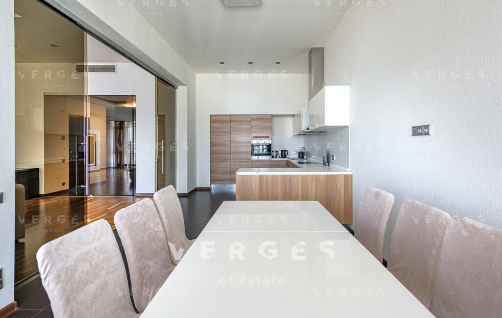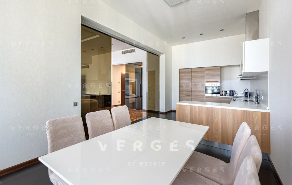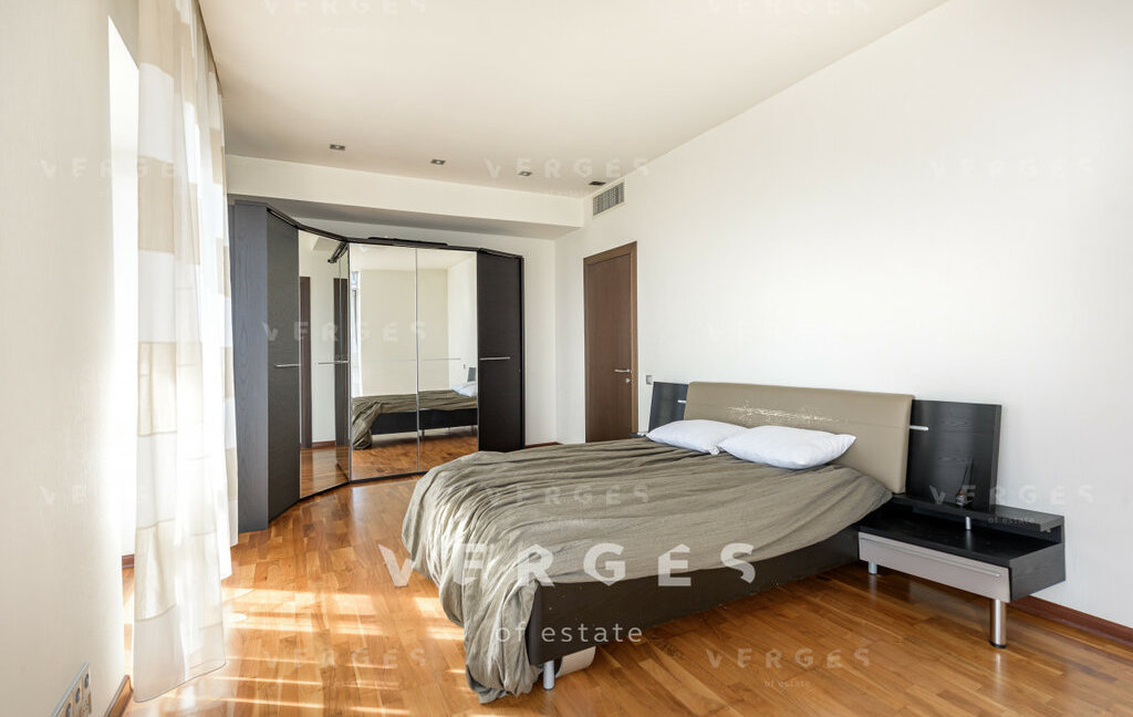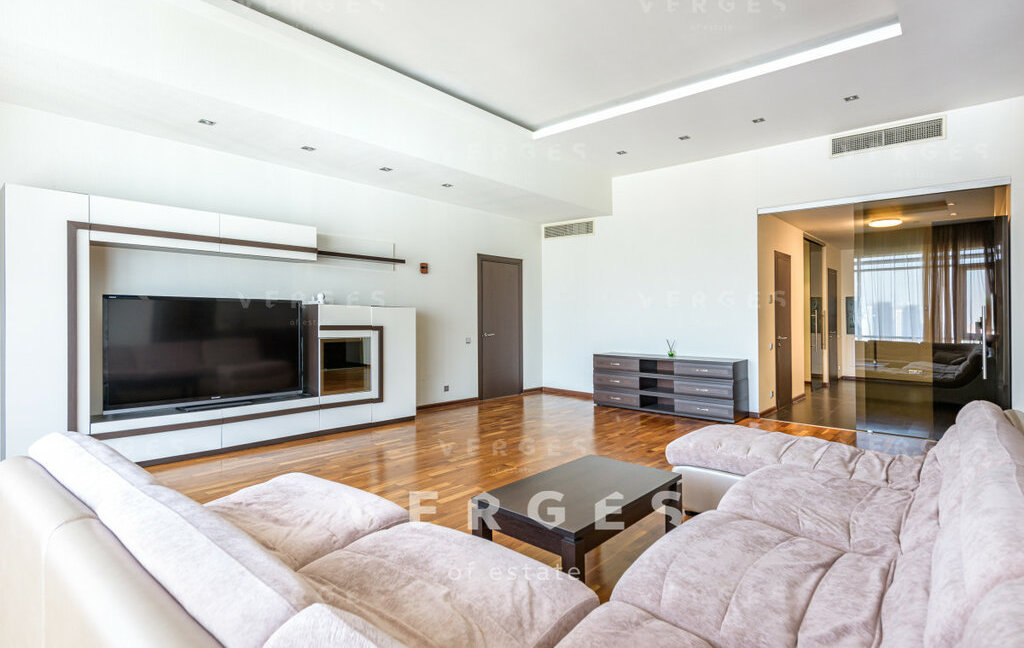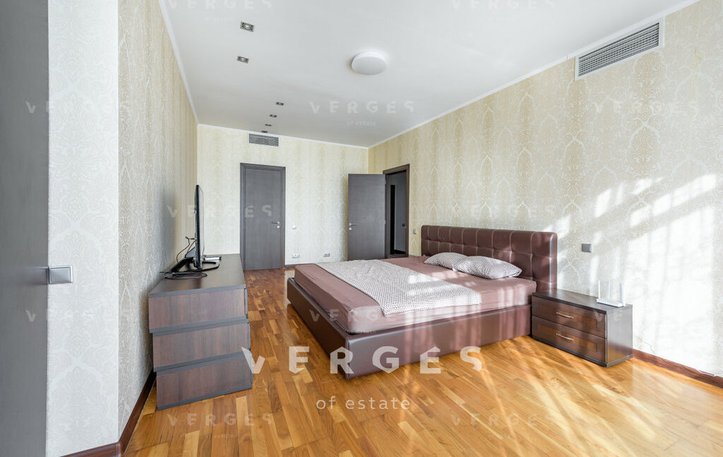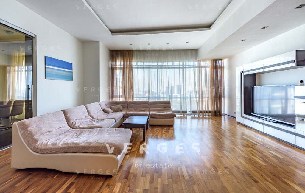 Просторная и светлая квартира в аренду площадью 195 м. Идеальный вариант для семьи. Большая гостиная и отдельная кухня станет отличным местом для семейных ужинов и встреч с друзьями. Отдельный блок из 3-х спален: 2 спальни свободного назначени со своим санузлом+ мастер блок состоящий из спальни со совим санузлом и гардеробом, так же есть постирочная и гостевой санузел. Высокие потолки 3.6 метра создают ощущение простора и свободы. Пространство организовано с учетом комфорта и эстетики. Квартира полностью оборудована необходимой техникой: кондиционер, холодильник, посудомоечная и стиральная машины. Из всех окон открываются панорамные виды на Волынкий лес, МГУ и пойму реки Стенуь. Район предлагает все необходимое для удобной жизни: рядом находятся школы, детские сады, клиники и магазины.