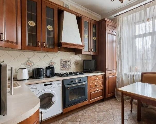 Встроенная кухня укомплектована всей бытовой техникой известных премиальных производителей. Установлен фильтр на чистую питьевую воду, есть газовая плита. Установлен НОВЫЙ духовой шкаф. В квартире имеются: 2 кондиционера, 3 телевизора (на кухне, в спальне, в гостиной), спутниковое ТВ, интернет. Есть обогрев полов. Окна во двор (можно спать с открытыми окнами). В подъезде работает круглосуточная охрана. Парковка на закрытом охраняемом дворе дома. Презентабельный подъезд. Новый ремонт в подъезде, новые 2 лифта. Парковка на закрытом охраняемом дворе дома. Можно с детьми. БЕЗ ЖИВОТНЫХ!