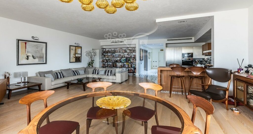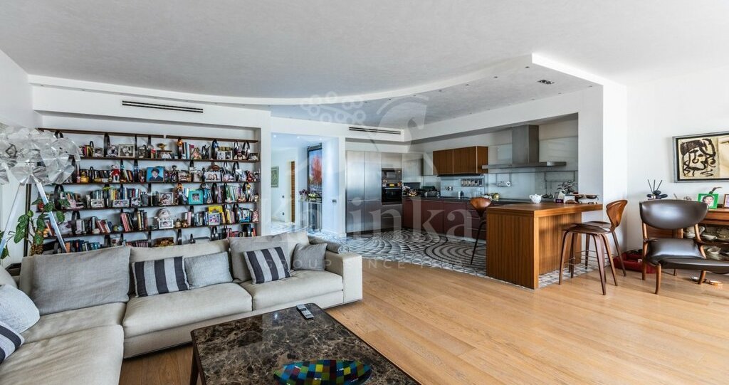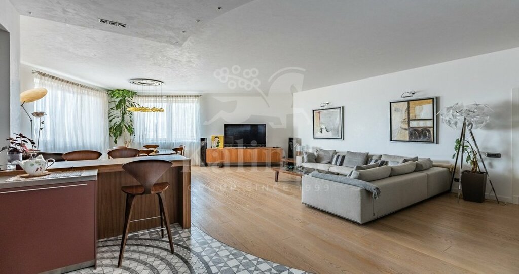 Современная квартира в премиальном жилом комплексе. Функциональная планировка включает в себя гостиную совмещенную с кухней и обеденной зоной. Итальянская дизайнерская мебель. Диван Minotti. На полу выложена мозаика Sicis. Вся бытовая техника Miele. Множество грамотных мест хранения. Мастер спальня с 2мя гардеробными (мужской и женской), также с собственной ванной комнатой.