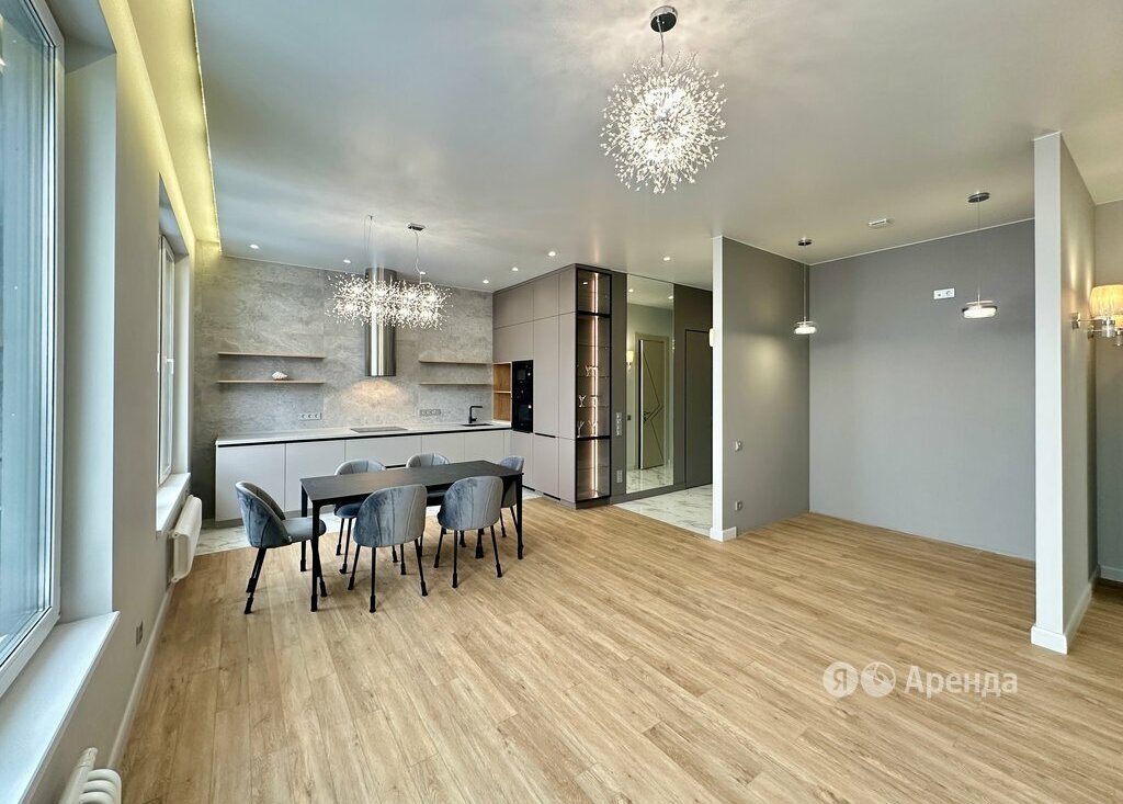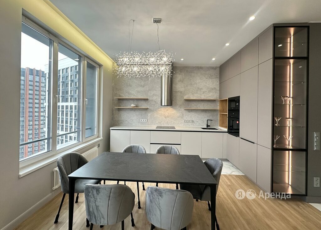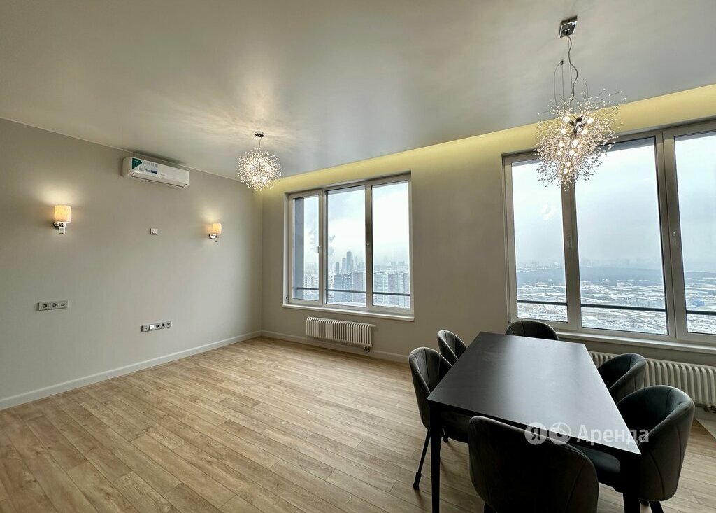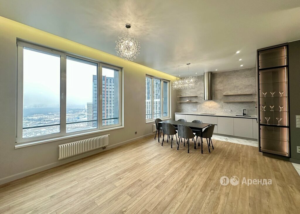Сдаётся 4-комнатная квартира площадью 83 кв.м. с евроремонтом на 36 этаже в 41-этажном доме на срок от 11 месяцев. Из техники есть: