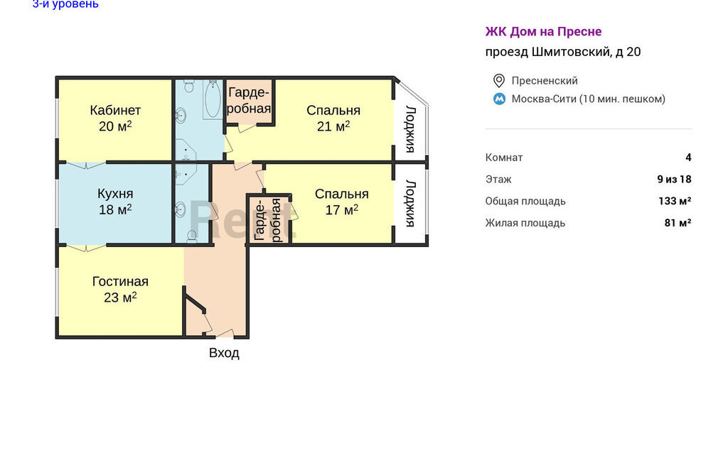 4-комнатная квартира: Москва, Шмитовский проезд, 20 (133 м²)