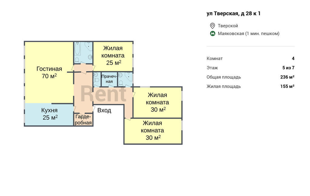 4-комнатная квартира: Москва, Тверская улица, 28к1 (236 м²)