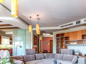 Просторная квартира с качественным ремонтом в классическом стиле. Высокие потолки. Полы - дерево, плитка с подогревом. Практичная планировка: кухня - гостиная - 2 изолированные спальни + кабинет. ГАРДЕРОБНАЯ КОМНАТА. 2,5 санузла: два полноценных санузла (ванна, душевая кабина), гостевой санузел. Квартира полностью меблирована. Встроенная кухня со всей необходимой бытовой техникой, включая посудомоечную машину. Кондиционеры. Много шкафов.