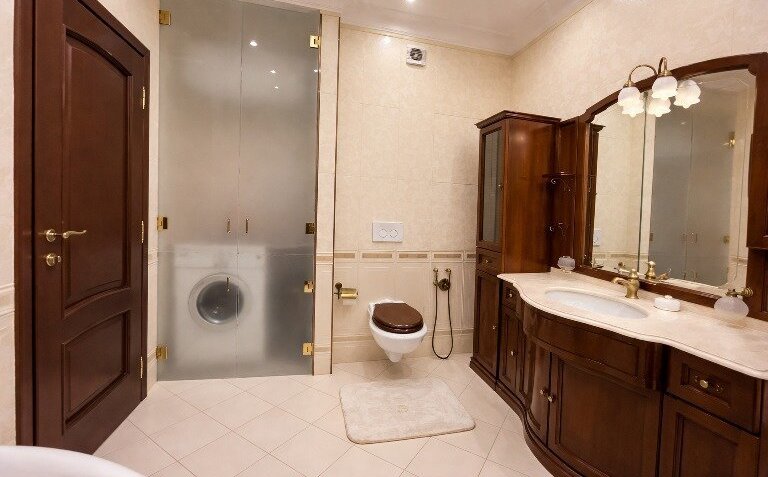 · Два санузла: в одном ванна с гидромассажем, в другом — душевая.