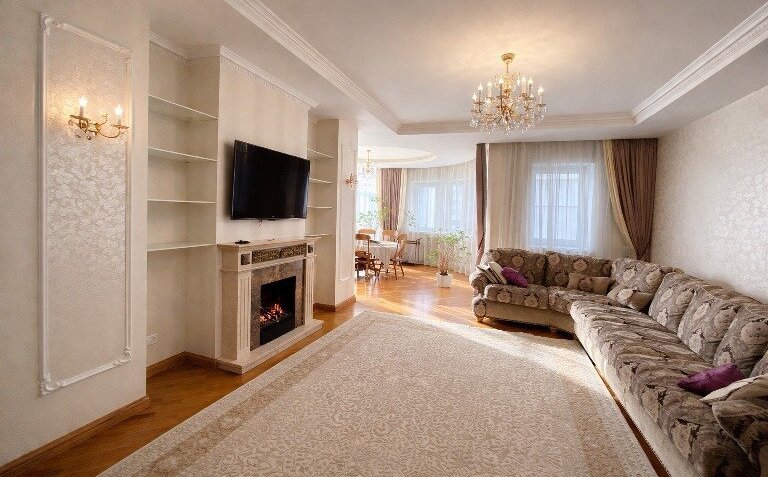 Ремонт в сдержанной классике, использовали натуральные материалы.