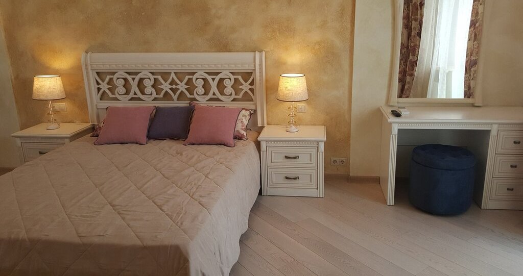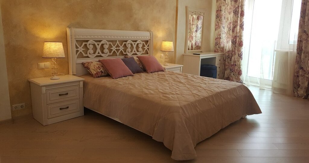 Предлагается в аренду просторная стильная 4х комнатная квартира в элитном ЖК Пирамида. Квартира общей площадью 195 кв м.: холл, гостиная студио с зонированной кухней, 3 спальни, 3 большие лоджии. Панорамные виды на 3 стороны. Оборудованы 2 гардеробные, 2 санузла (Немецкая сантехника Villeroy & Boch). Высокие потолки. Сплит-система. Полы с подогревом. Выполнен качественный дизайнерский евроремонт. Квартира светлая, полностью меблирована и оборудована бытовой техникой Bosch. Также выполнен ремонт этажа и лифтовых холлов.
