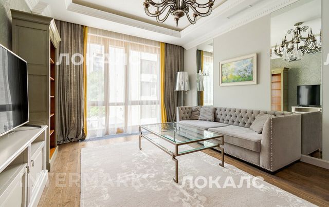ID 40815 В престижном жилом комплексе «Литератор» в Хамовниках предлагается изысканная трёхкомнатная квартира площадью 153 кв. м. Планировка: большая кухня-гостиная, три спальни с отдельными ванными комнатами (c душевыми кабинами, ванны нет), просторная гардеробная и постирочная. Выполнена дизайнерская отделка натуральными дорогостоящими материалами, стеклопакеты со звукоизоляцией, кондиционеры, деревянные полы. Место на подземной парковке предоставляется за дополнительную плату. Можно с детьми. PLEASE FEEL FREE TO CONTACT US TO GET DETAILED INFORMATION OR TO SET UP A VIEWING! 24/7 HELP DESK SERVICE WITH ENGLISH -SPEAKING OPERATORS