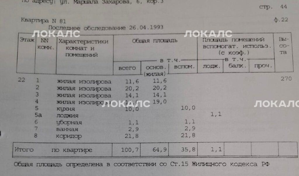 4-комнатная квартира: Москва, улица Маршала Захарова, 6к3 (100.7 м²)