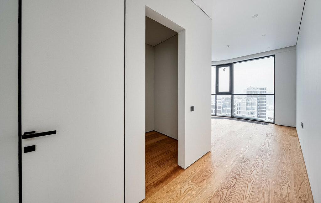ОТДЕЛКА: В квартире выполнена отделка премиум-класса от застройщика, включающая полностью готовые санузлы с установленной сантехникой, душевыми кабинами и ванной. Стены покрыты финишной краской. Установлены скрытые межкомнатные двери и напольное покрытие из паркетной доски, смонтирован скрытый плинтус. Кухонная зона оборудована гарнитуром со встроенной бытовой техникой: холодильником, морозильной камерой, посудомоечной машиной, духовым шкафом и варочной панелью. В санузлах и прихожей установлена система "теплый пол". Реализовано точечное освещение.
