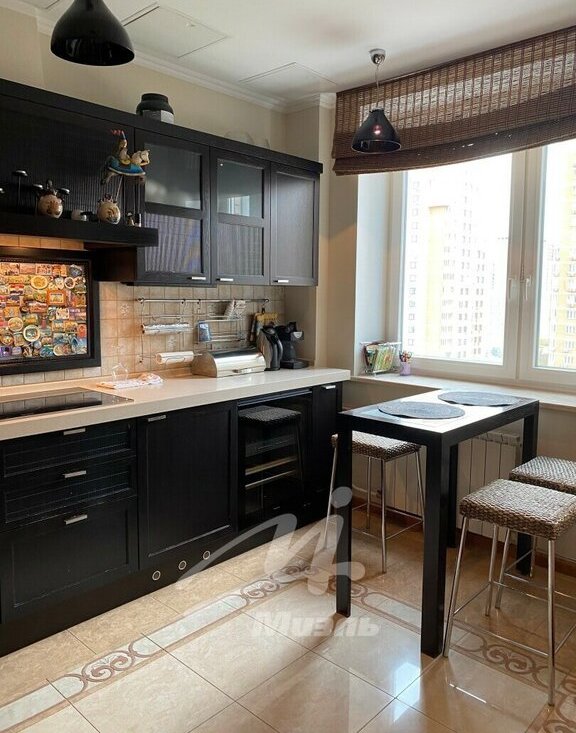 Спальня, детская комната, кабинет, большая гостиная. Два санузла. На территории детская площадка, теннисный корт, зона отдыха с барбекю, Парковка наземная и своя платная подземная. Охрана в подъезде. Шлагбаум. Рядом Воронцовский парк и парк 50- летия Октября.