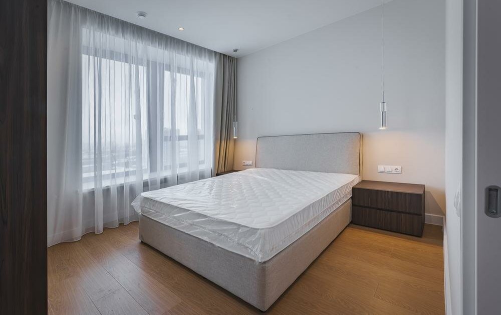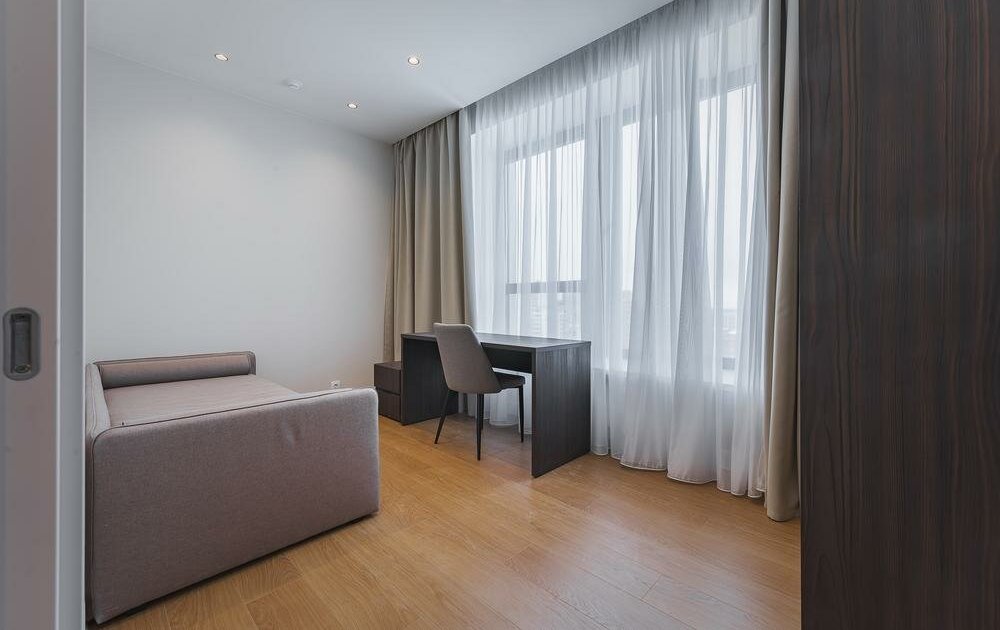Предлагается в аренду 4-комнатная квартира №3398 с евро планировкой (кухня-гостиная + 3 спальни) с высокими потолками площадью 70 м2, расположенная на восемнадцатом этаже нового арендного дома Матч Поинт. Окна апартаментов выходят на волейбольную арену. Современный эргономичный дизайн, вся необходимая мебель, техника, разработанная с использованием умных технологий. Зона кухни оборудована встроенной техникой фирмы Hotpoint: 2-х камерным холодильником, варочной 4-х комфорочной панелью, духовым шкафом, посудомоечной машиной и вытяжкой. Мебель европейского производства: при входе в апартаменты расположен вместительный шкаф (Permo, Италия), пуф, массив которого выполнен из бука и хвойных пород, материал обивки - ткань "гусиная лапка", панель вешалка. Просторная кухня-гостиная оснащена комплектом кухонной мебели с деревянными фасадами белого цвета, стильной обеденной группой на 4 персоны: прямоугольный стол со стеклянной белой столешницей и удобными стульями с мягкими тканевыми сиденьями коллекции MASON; двуспальным раскладным диваном (190 см * 150 см, механизм "еврокнижка", тканевая обивка Casain piain) и плазменным TV от Panasonic с TV тумбой. В апартаментах три изолированные комнаты: спальня, детская комната и третья комната свободного назначения (её намеренно не меблировали). В большой спальне есть двуспальная кровать (180 см * 200 см) с мягким изголовьем и матрасом, выполненным из бельгийского материала с ортопедическим эффектом. Благодаря 5-ти зональному пружинному блоку матраса Ваш позвоночник будет получать превосходную поддержку. Помимо кровати в спальне из мебели есть прикроватные тумбочки со стильными подвесными светильниками над ними, шкаф (вся мебель фирмы Permo, Италия). Детская оснащена диваном-кроватью (длина спального места 190 см, ширина 90 см; есть выкатной ящик, предусмотренный для хранения вещей), прикроватной тумбочкой, письменным столом, стулом и шкафом. Во всех комнатах установлены кондиционеры. На окнах помимо тюли есть портьеры Design&Colors, SOLKLIMA DESEN. Совмещенный санузел с ванной и раковиной, вместительной и удобной в использовании стиральной машиной, большим зеркалом с подсветкой.