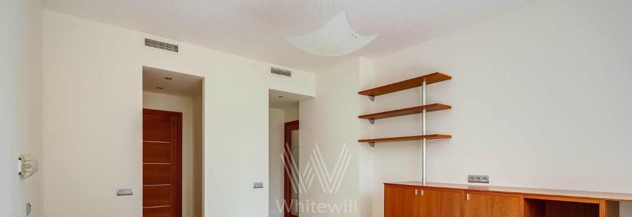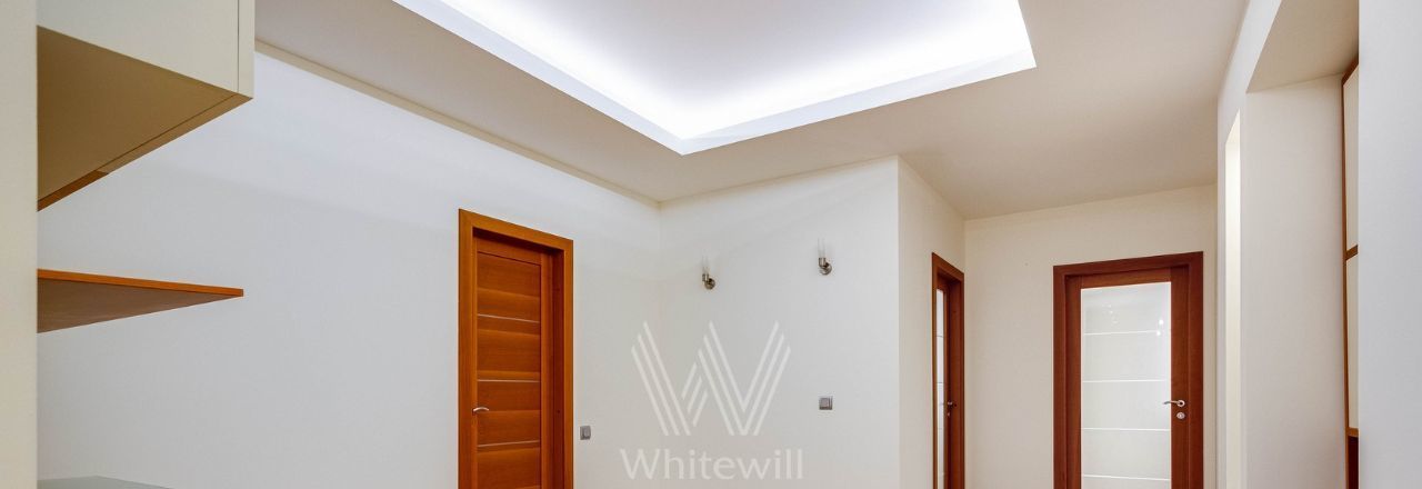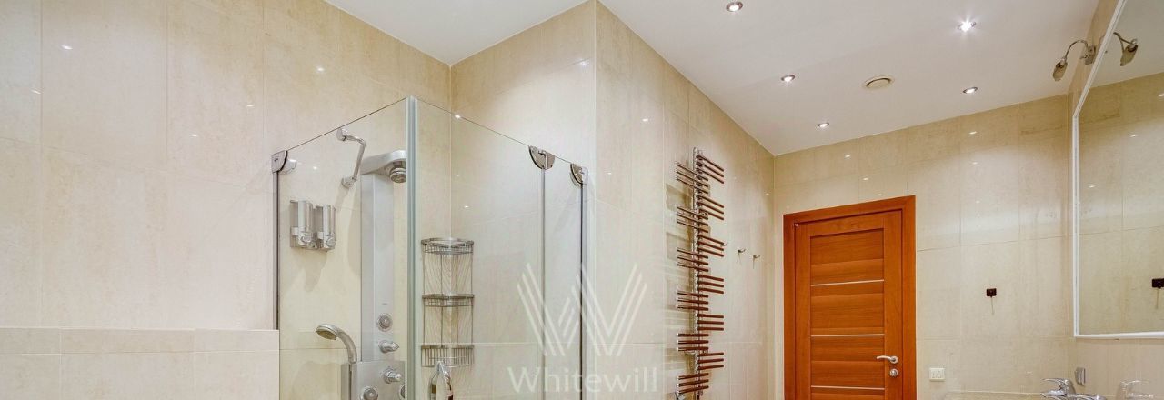 Бонус партнёрам 50%. Квартира с 4-мя спальнями общей площадью 204 м² в комплексе "Новопесковский". Выполнена современная отделка с использованием натурального дерева. Интерьер оформлен в приятных светло-бежевых тонах, полы выложены инженерной доской. В гостиной установлен большой мягкий диван, кухня оснащена встроенной техникой и барной стойкой.