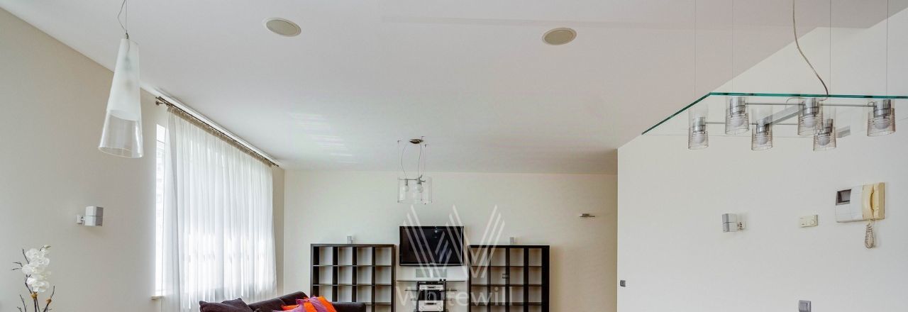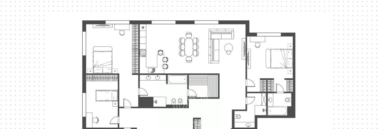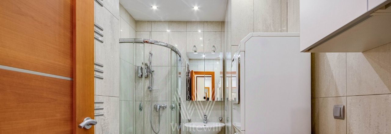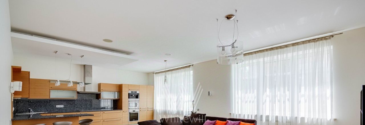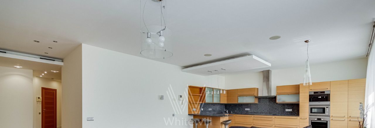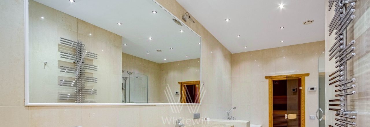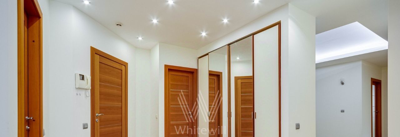 Планировка: просторная кухня-гостиная, 2 спальни с ванными комнатами, 2 спальни, 2 санузла, кладовая, холл. Всего в квартире 4 полноценные ванные комнаты, в одной из них обустроена сауна. Из окон открывается вид на город, на улицу и во двор. Машиноместо в подземном паркинге входит в стоимость.
