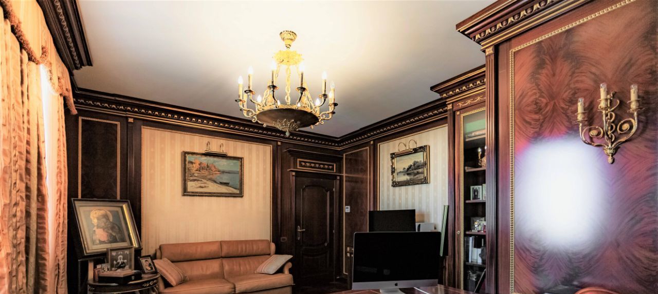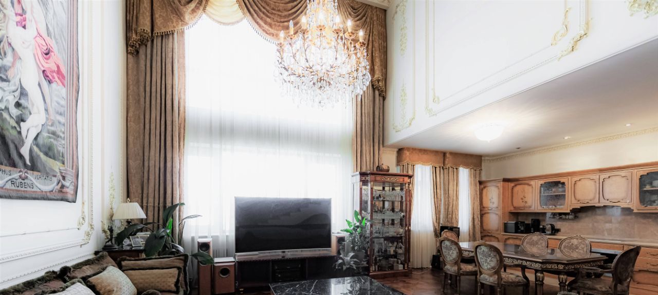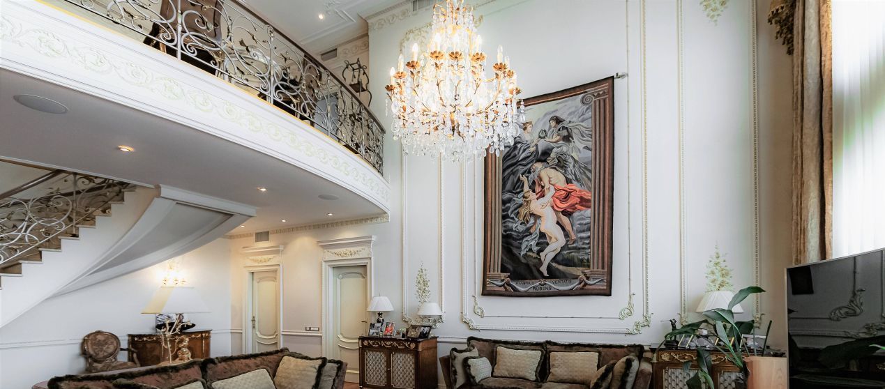 Отделка соответствующая из премиальных материалов. Изящная лепнина и художественная ковка выполнены на заказ и подчеркивают статус. Дорогая, в том числе антикварная, мебель и эксклюзивные предметы интерьера гармонично сочетаются и создают атмосферу уюта и благополучия.