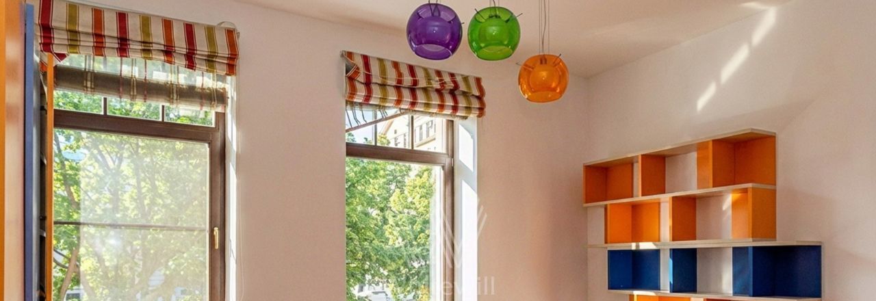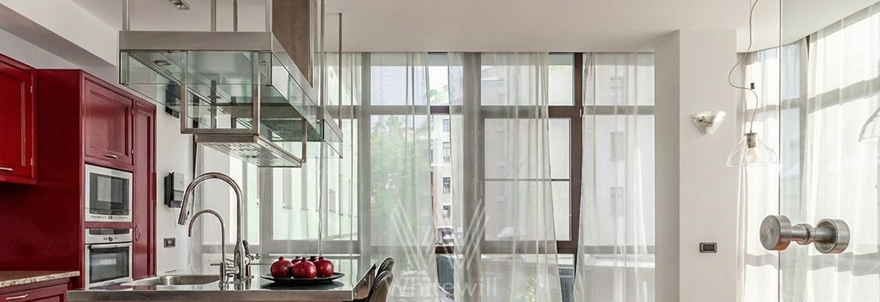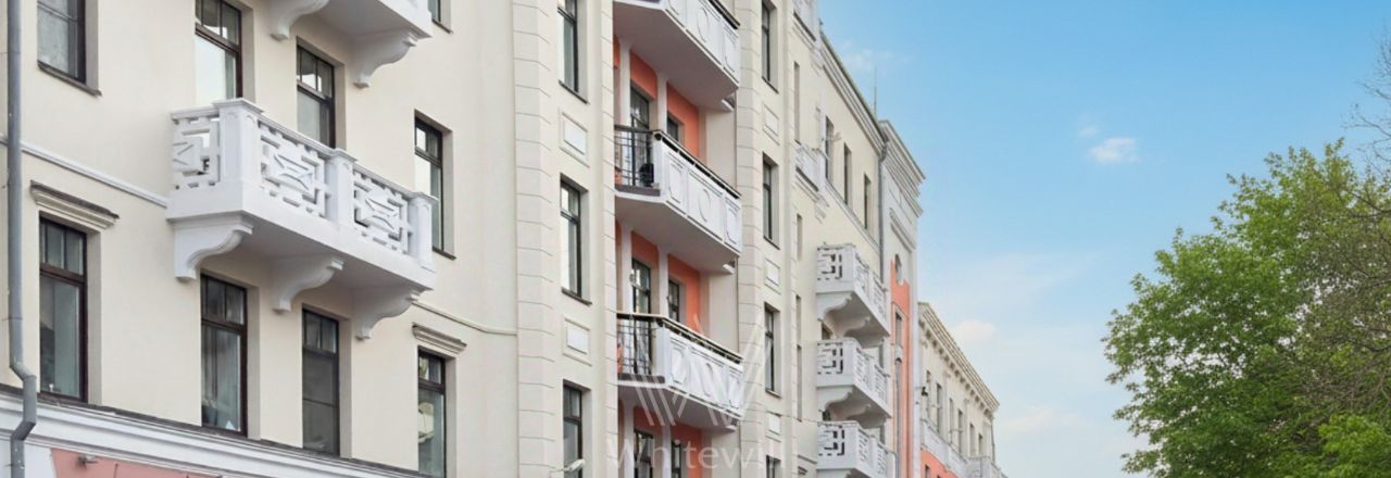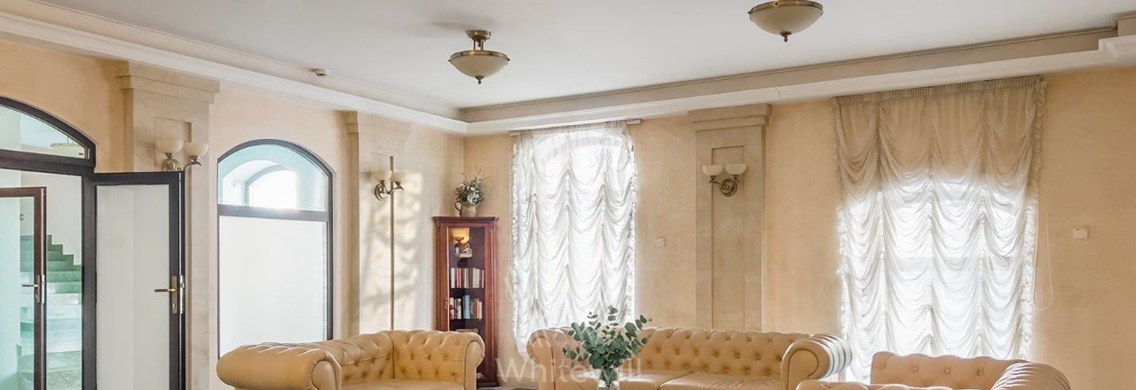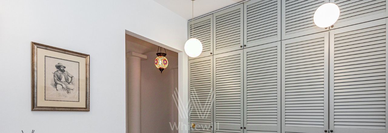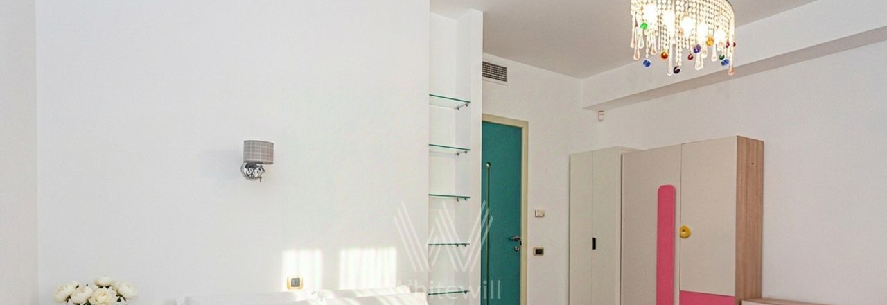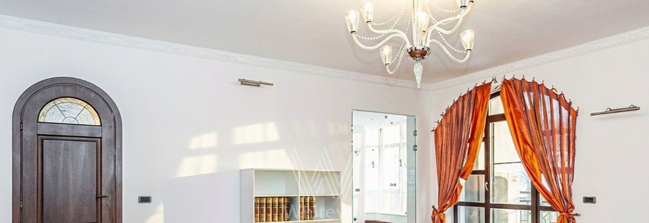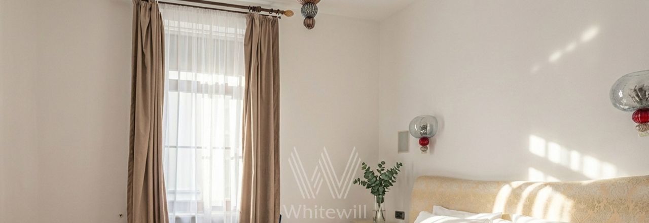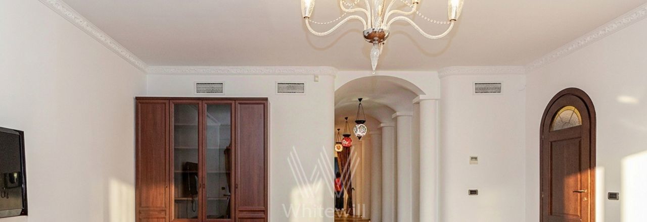 Квартира с 4 спальнями общей площадью 205 м² в клубном доме премиум-класса "Дом Удачи". Квартира с отделкой расположена на 2 этаже. Интерьер оформлен в светлых тонах в классическом стиле — пилястры, венчающие карнизы, многоуровневые потолки.
