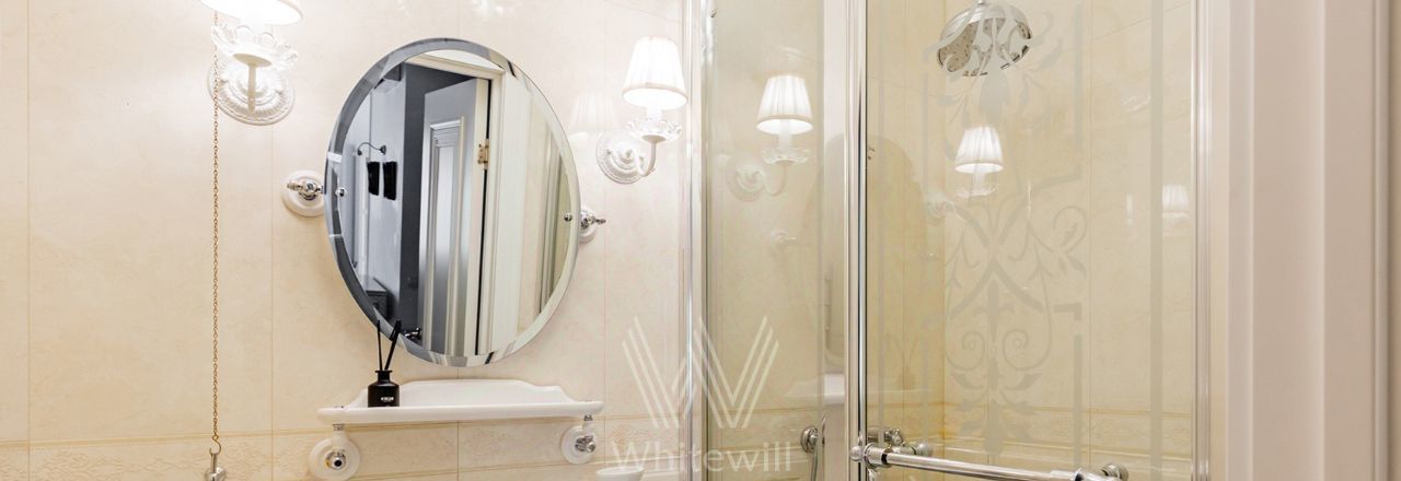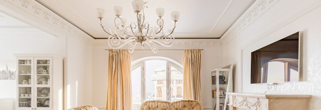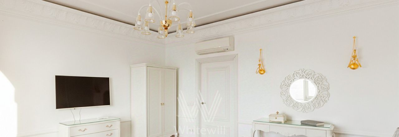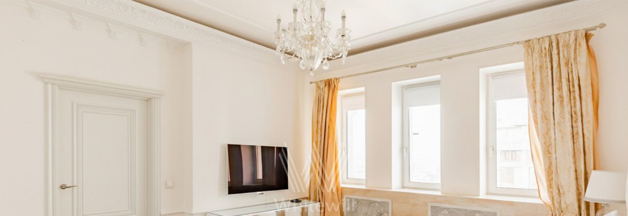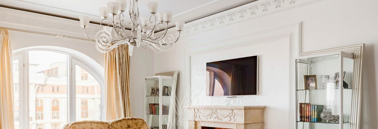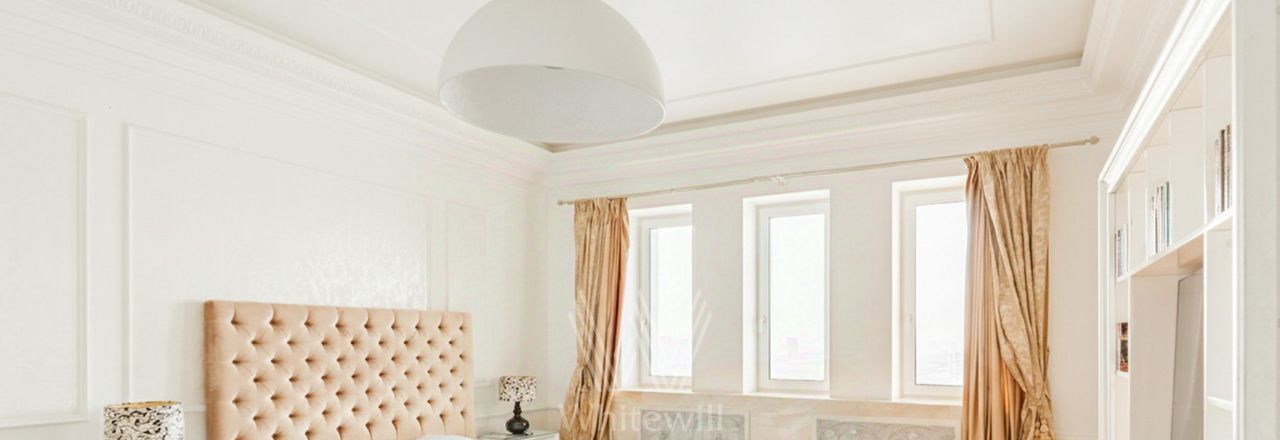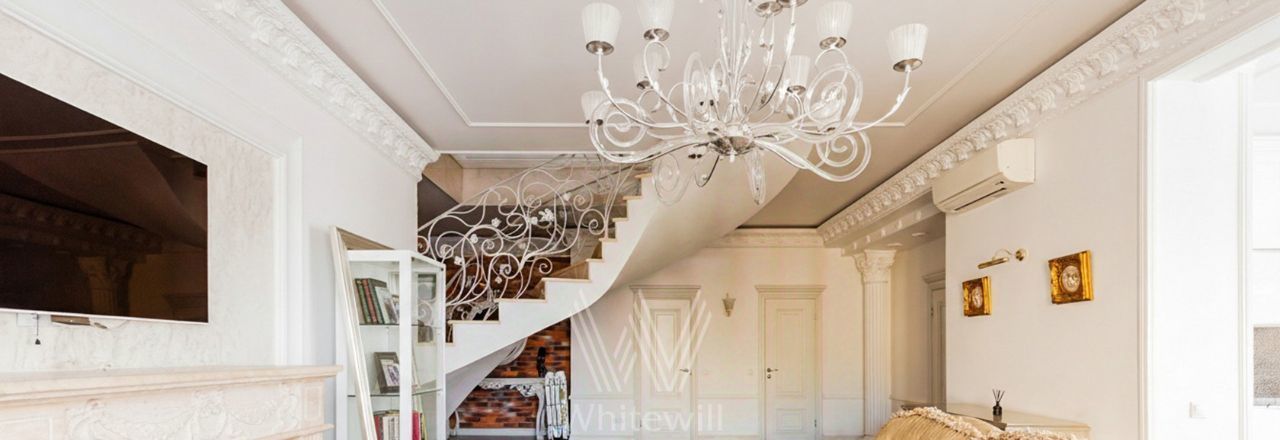 Бонус партнёрам 50%. Двухуровневая квартира с 4 спальнями общей площадью 240 м² в комплексе премиум-класса "Триумф Палас". Выполнен ремонт в стиле дворцовой классики, интерьер оформлен в светлых тонах. В отделке использовано натуральное дерево, белая лепнина, декоративный кирпич. Высота потолков 3 метра.