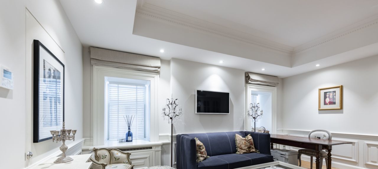 В квартире установлена встроенная аудиосистема, с управлением через приложение телефона, центральное кондиционирование, интернет, центральная кнопка выключателя.