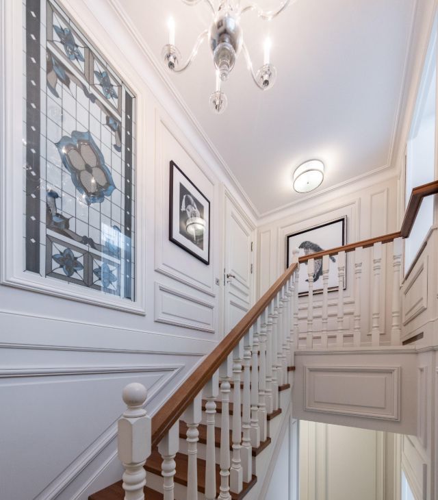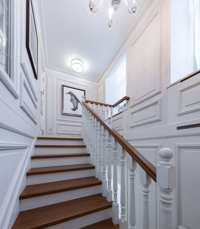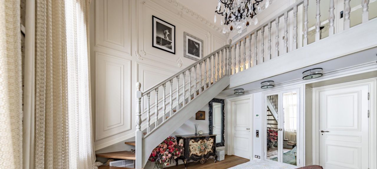 * Второй этаж: Детская комната с антресолью и потолками 5 метров ( 30 кв.м.), Хозяйская спальня (40 кв.м.) с антресолью, гардеробной и сан.узлом (12 кв.м), Холл, Столовая, кухня. Гостинная с библиотекой, Сан.узел с душевой. Выход в подьезд с консьержем.