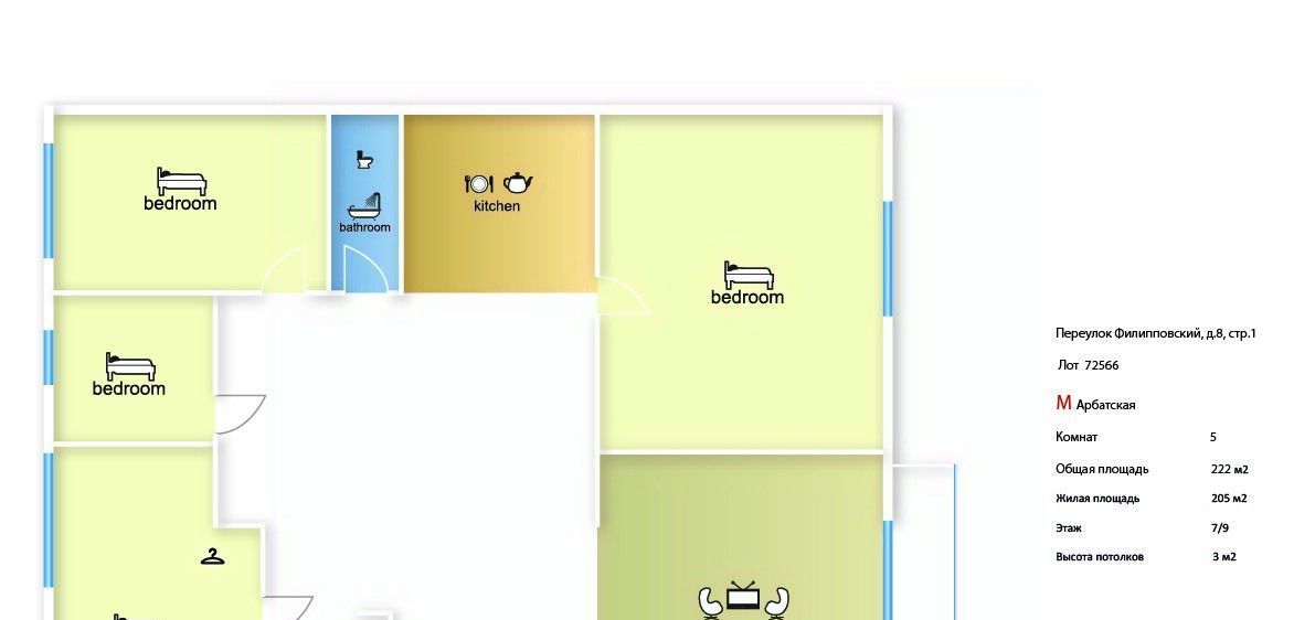 5-к кв. Москва Филипповский пер., 8С1 (222.0 м²)