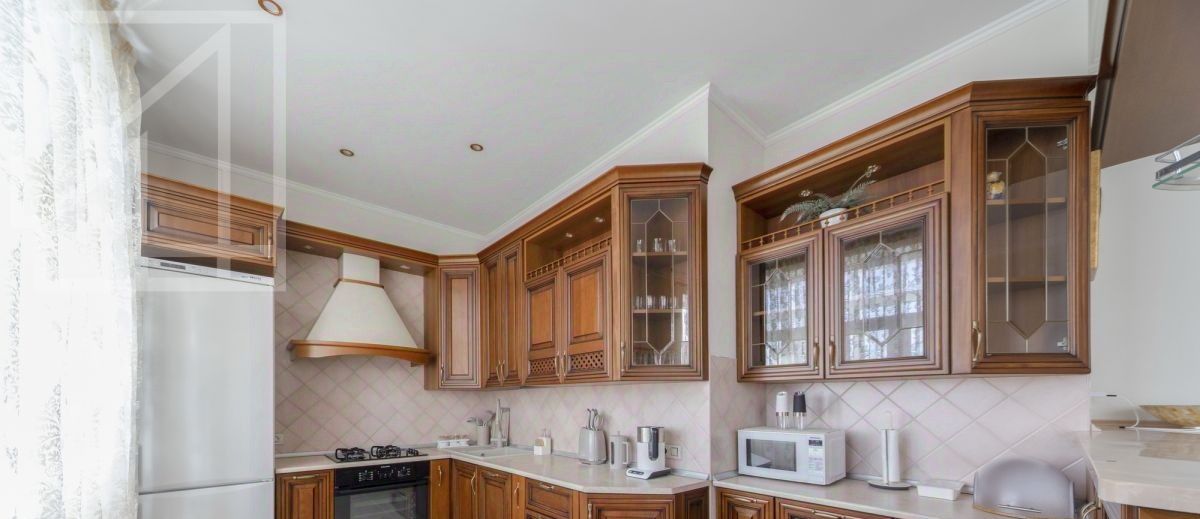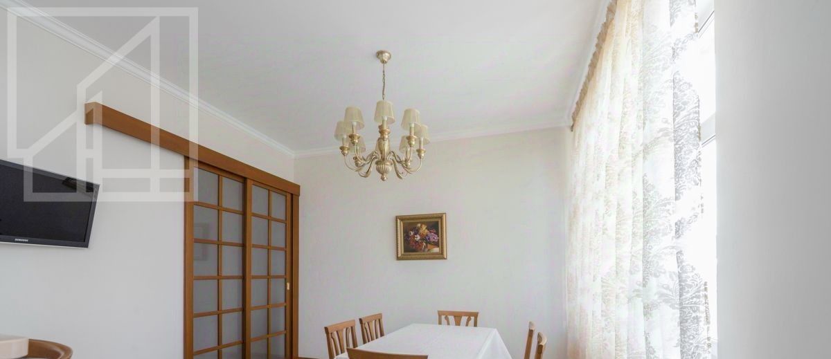 Планировка: кухня, гостиная, четыре изолированные спальни, гардеробная комната, совмещенный санузел, раздельный санузел, два балкона, прихожая. Квартира полностью меблирована, оснащена всей необходимой бытовой техникой для для комфортного проживания. Возможна докупка недостающей мебели под клиента. Высокие потолки, панорамные окна, много мест для хранения. Тихий закрытый двор с детской и спортивной площадками.