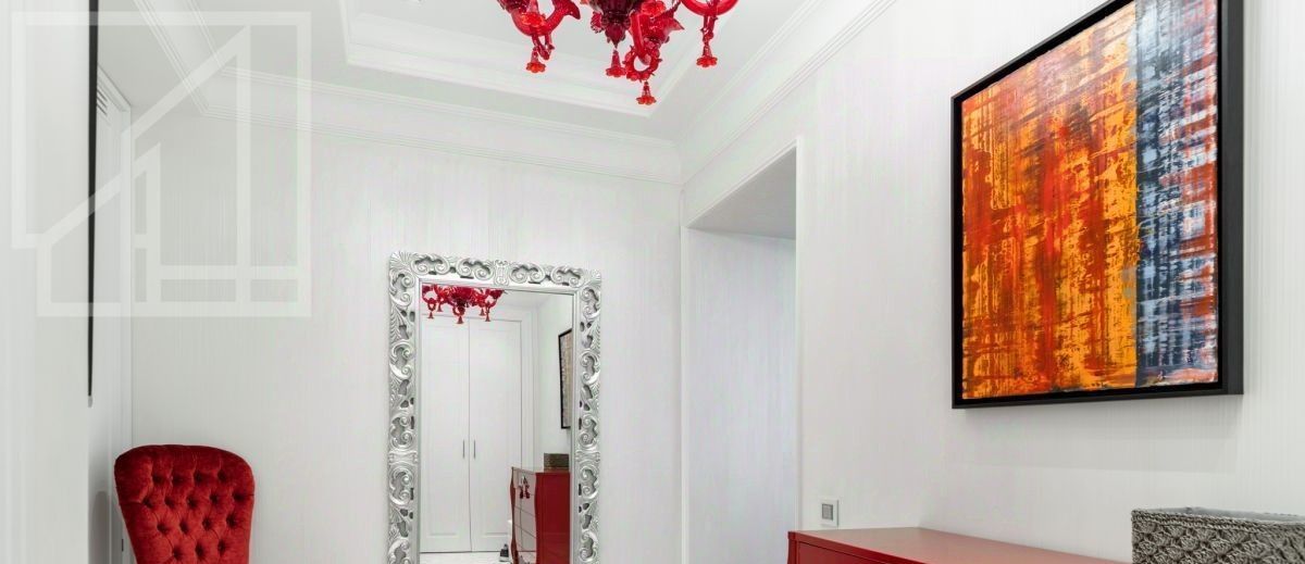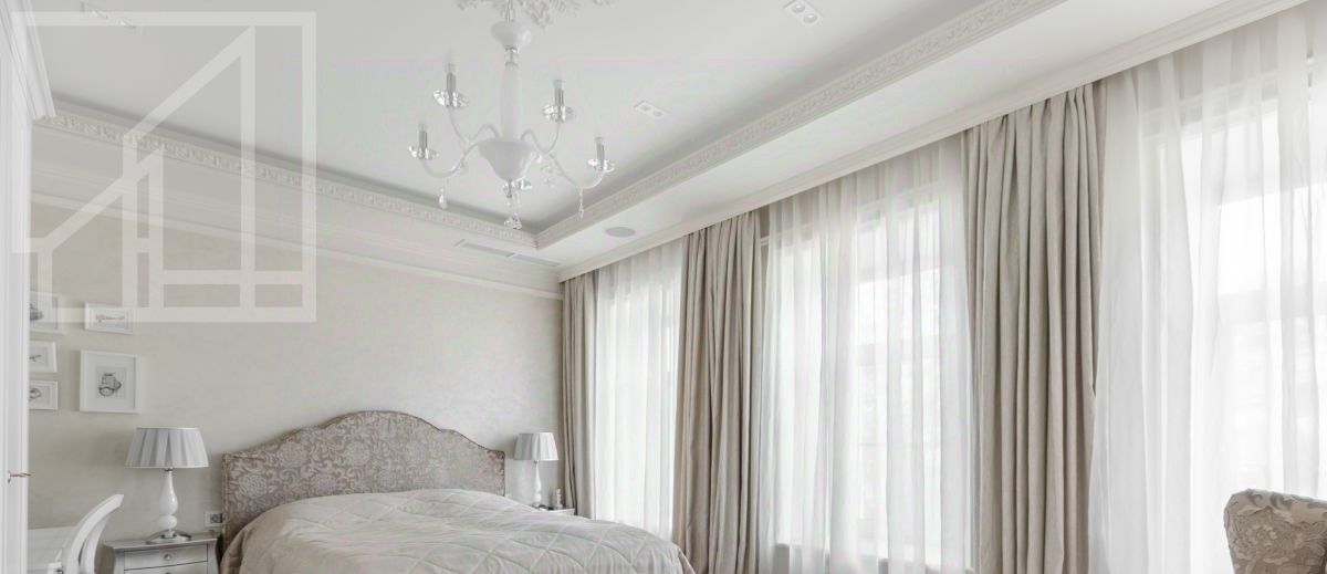 Планировка: просторная кухня-гостиная с обеденной зоной, три спальни, кабинет, два совмещенных санузла с ванной и душевой кабиной, две гардеробные комнаты, прихожая. В наличии: система канальной вентиляции и кондиционирования воздуха с ночным режимом производства Daikin; система управления "умный дом", встроенная в потолок акустическая система, теплый пол, биокамин.