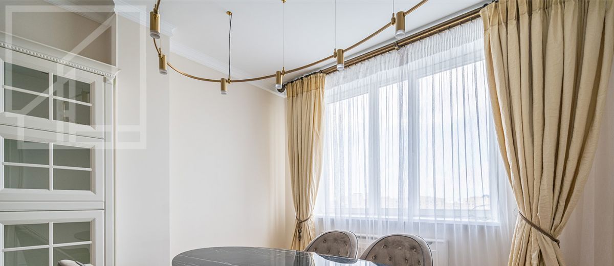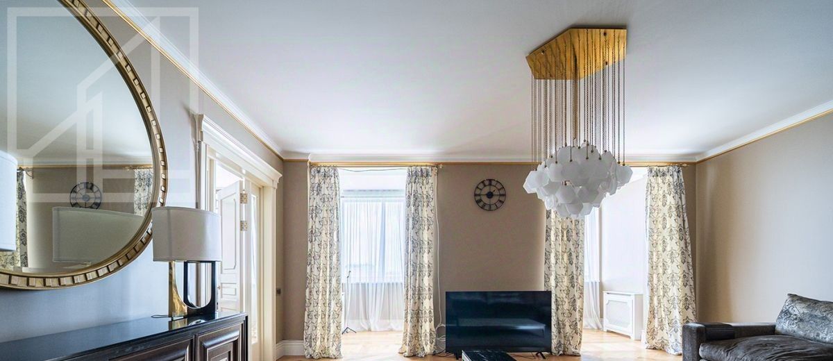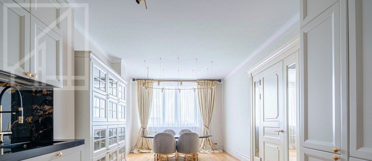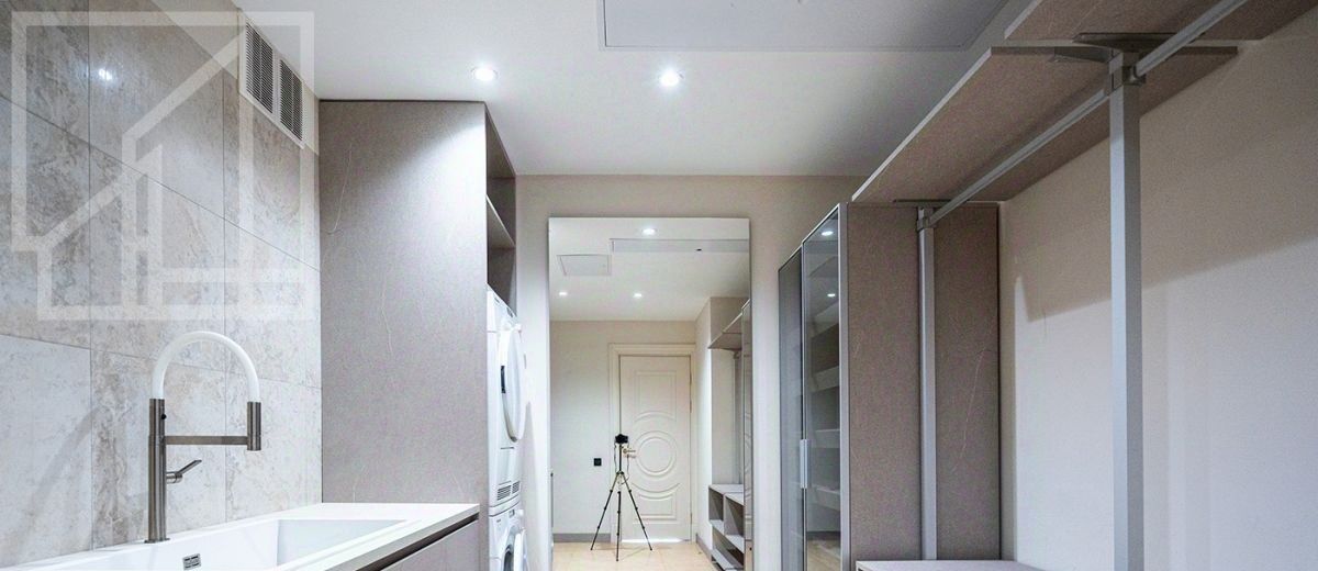 Планировка: 1 мастер спальня со своим санузлом и гардеробной, 1 спальня с гардеробом, 2 изолированные спальни, постирочная, гостиная, кухня-столовая, полноценный санузел и гостевой санузел. Потолки 3м. Новый ремонт. Квартира полностью меблирована и оснащена всей необходимой техникой.
