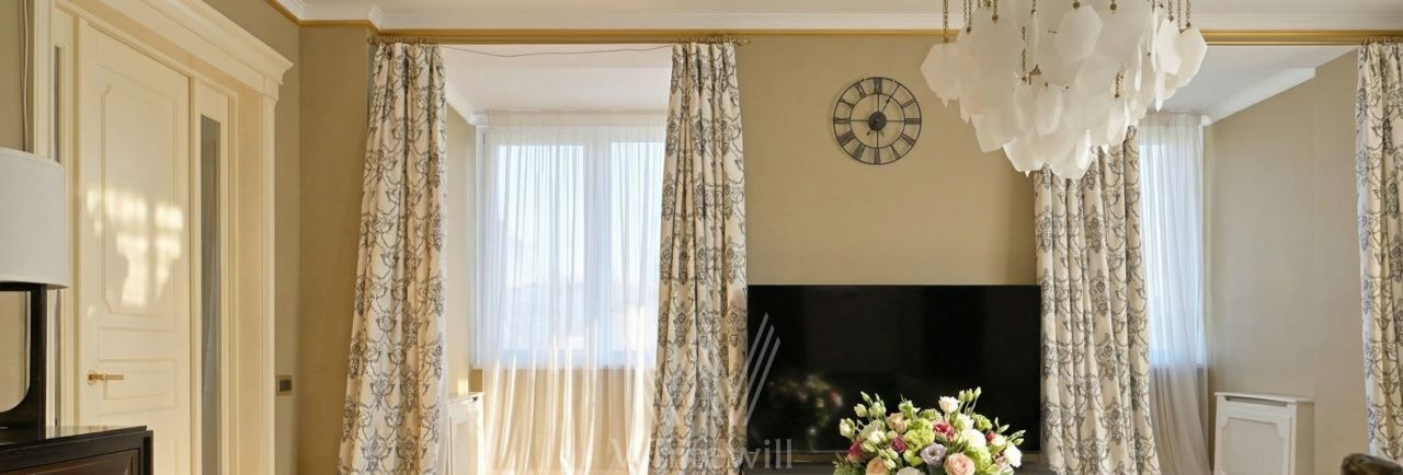 Просторная квартира с 4 спальнями общей площадью 230 м² на 12 этаже в комплексе бизнес-класса "Камелот" в Хамовниках. Выполнен дизайнерский ремонт, входная группа и спальня от Fendi. В отделке использован натуральный мрамор, велюр, шторы сшиты на заказ. Квартира меблирована, укомплектована техникой Kuppersberg, телевизорами Toshiba. Из окон открывается панорамный вид на город.