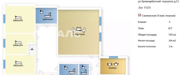5-к кв. Москва Кривоарбатский пер., 12 (140.0 м²)