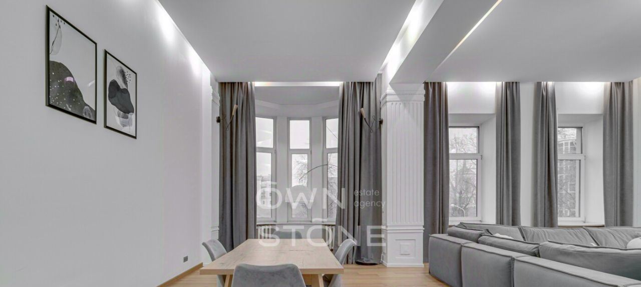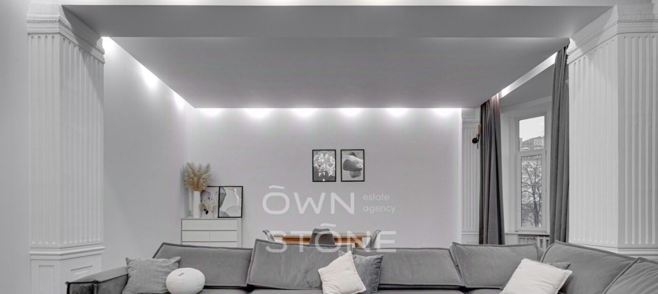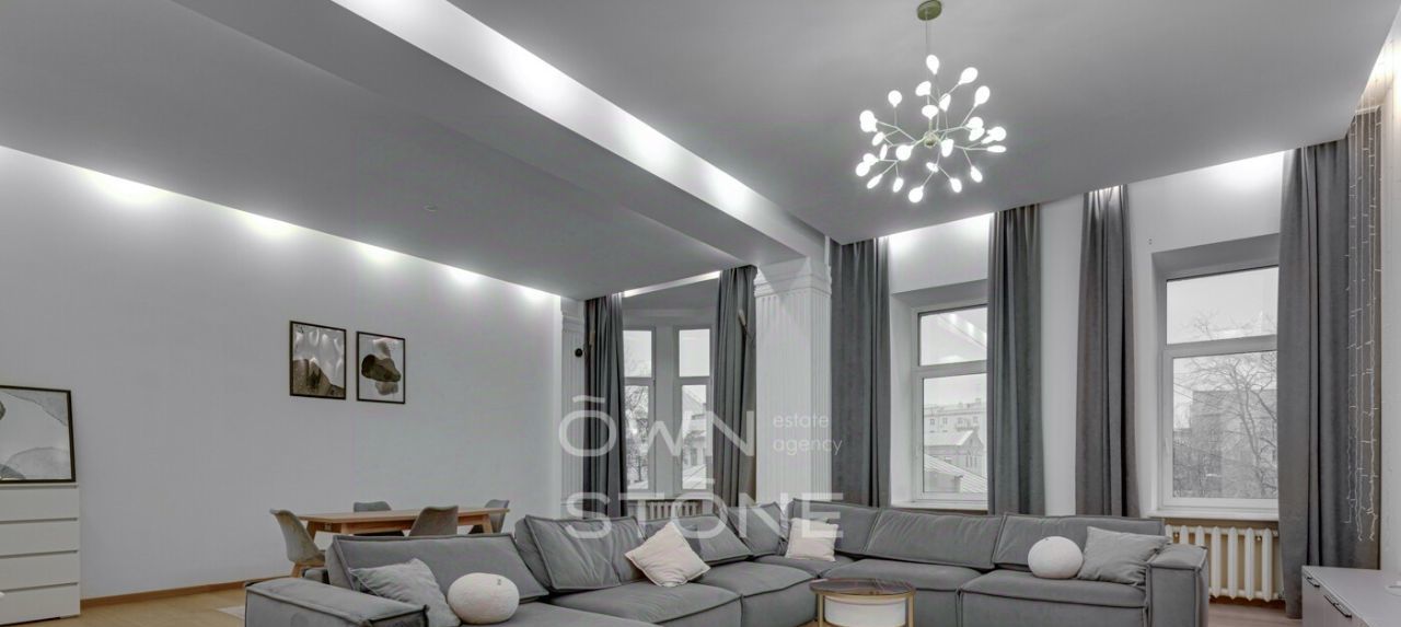 Стильная 5-комнатная квартира в особняке 1912 года. 5/7 этаж. Высота потоков - 3.8 м. Количество спален: 4. Количество санузлов: 2 совмещенных, 1 раздельный. Общая площадь: 212 кв. м. Площадь кухни: 25 кв. м. Окна во двор и на улицу. Постирочная, 1 гардеробная, много мест для хранения. Кухня отдельно с черным ходом. Большая гостиная, с обеденной группой.