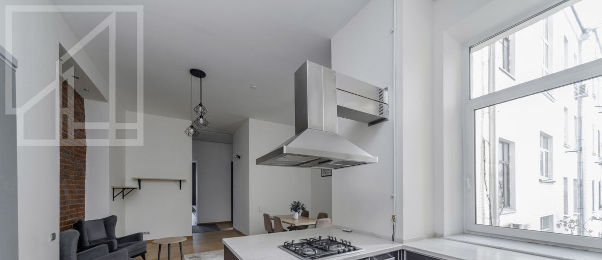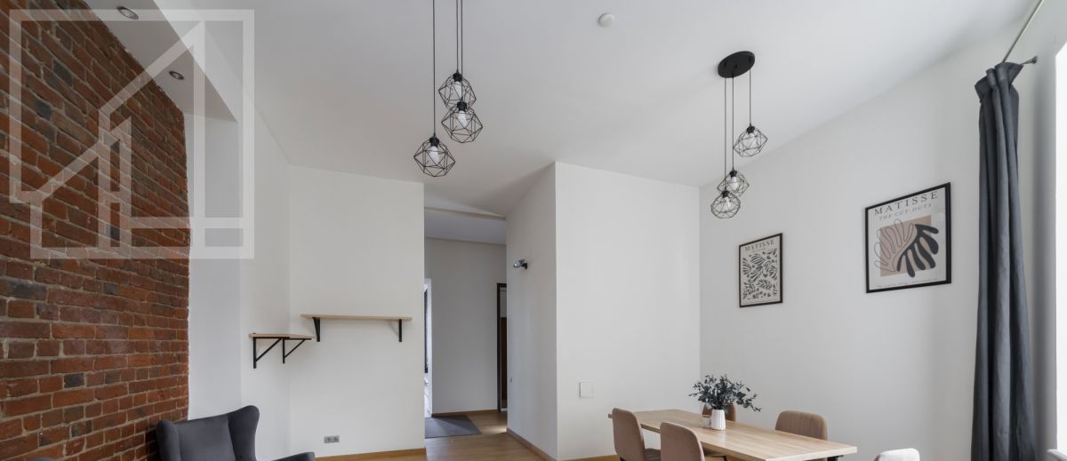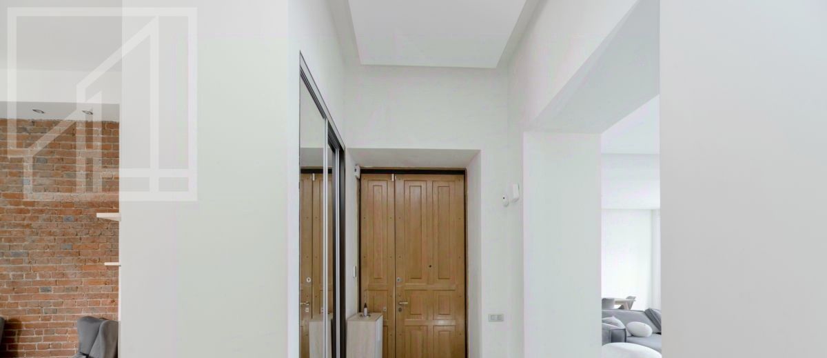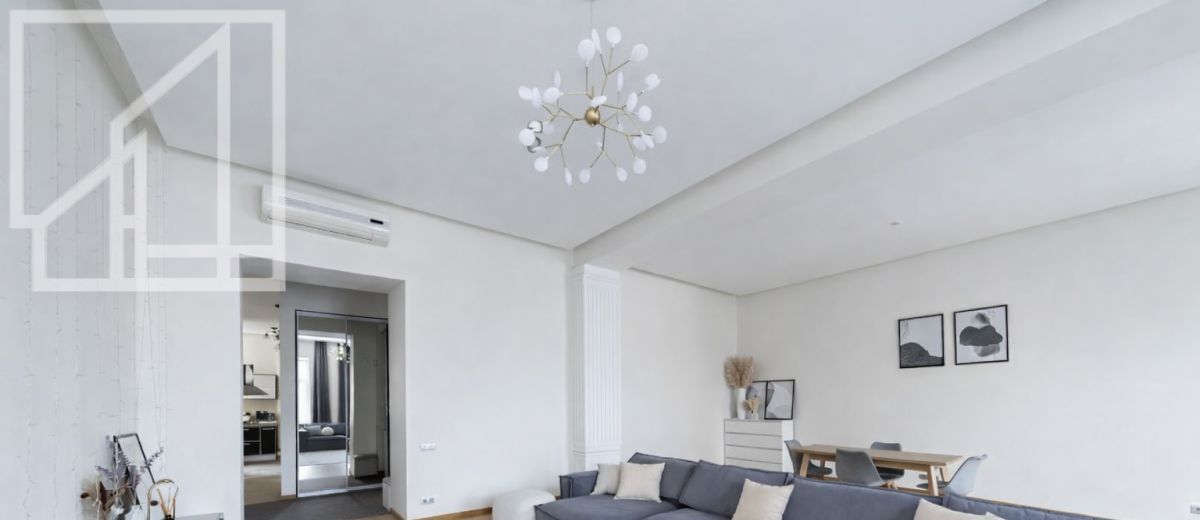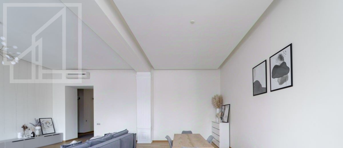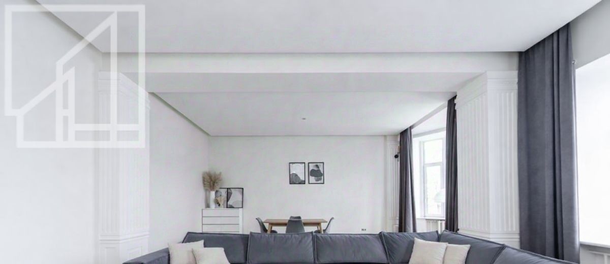 Планировка: гостиная, кухня, четыре спальни, гардеробная, две ванные комнаты и гостевой туалет, постирочная. Высокие потолки. Выполнен ремонт с использованием только натуральных материалов. Квартира полностью меблирована и оснащена всей необходимой техникой.