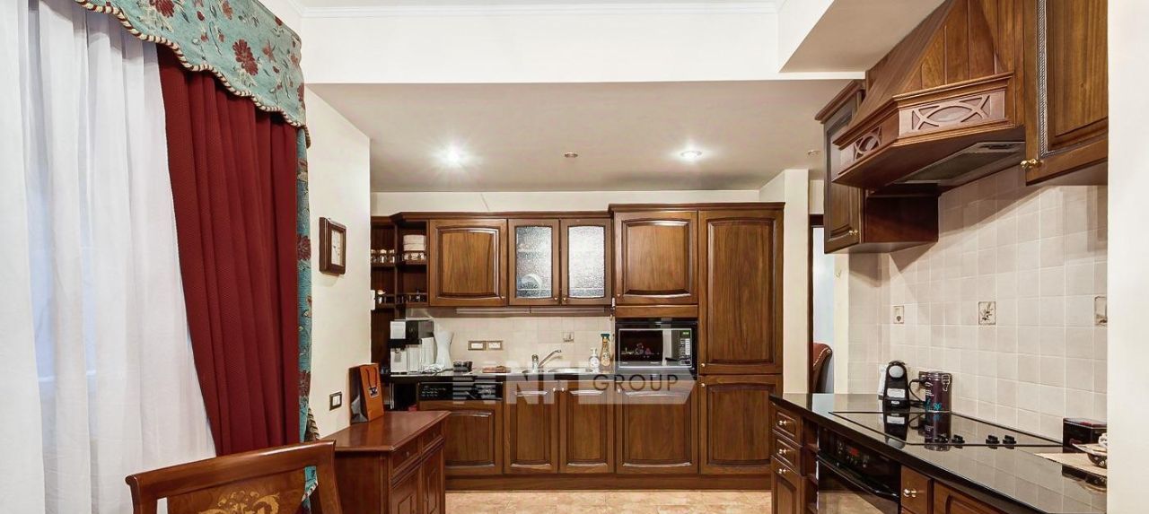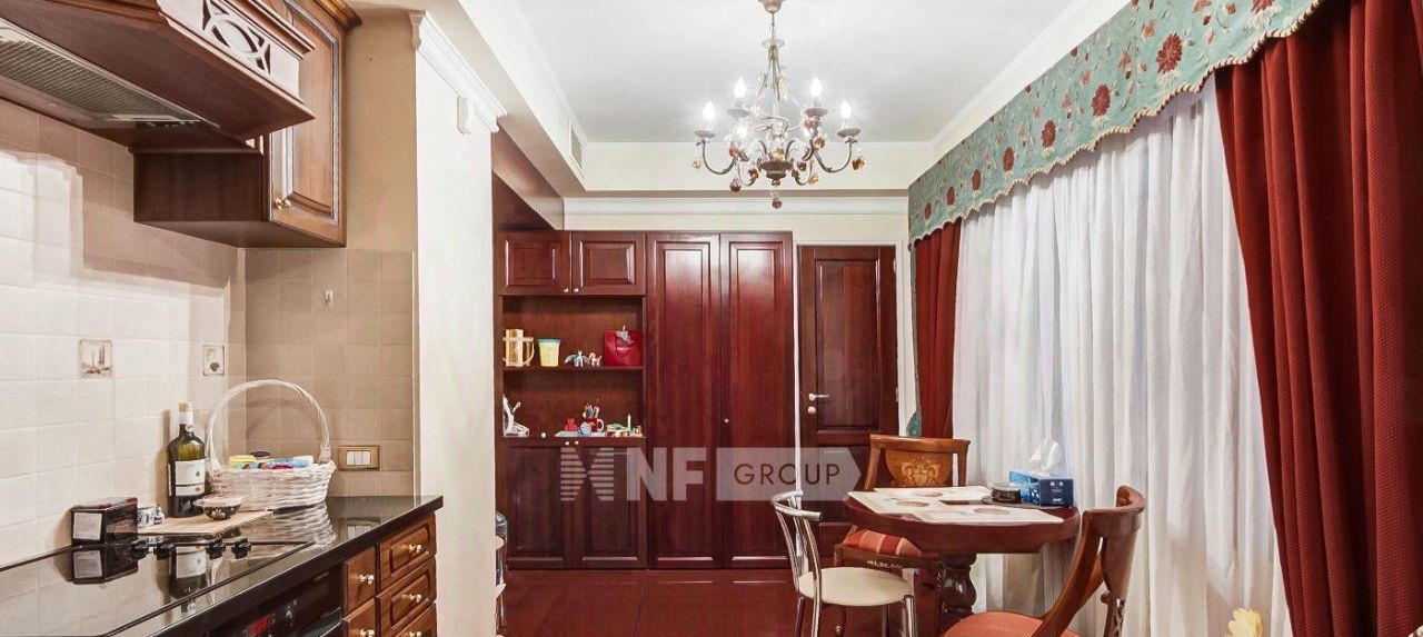 Выполнена отделка в классическом стиле, установлена мебель итальянских фабрик, авторский свет и предметы интерьера. Квартира оснащена современной бытовой техникой.