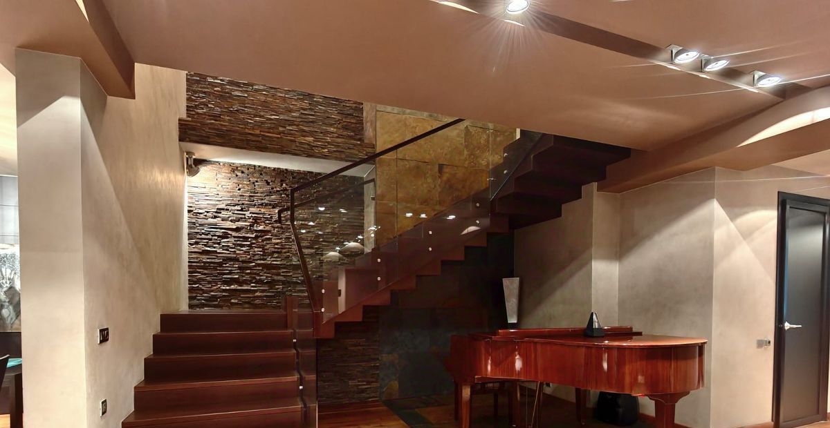 1й этаж: гардеробная, кухня-гостиная, кабинет, зона отдыха с кинотеатром, музыкальный уголок придающий уникальности и изысканности, сауна электрическая, прачечная, гостевой санузел, лоджии;