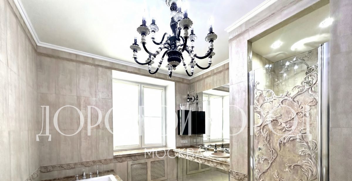 - мастер-спальня с собственной гардеробной и большой ванной зоной с окном (ванна и душевая), выполненной в мраморе от пола до потолка