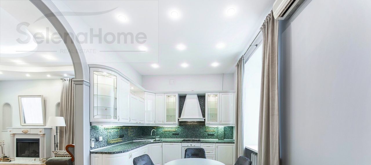 Сотрудничаем с коллегами! Предлагается 5-комнатная квартира с новым дизайнерским ремонтом и новой мебелью в неоклассическом стиле. Четыре изолированных комнаты. Из которых: три спальни с двумя санузлами выделены в отдельную приватную зону, и кабинет. Высокие потолки - 3,50 метра. Очень тихо. Много мест для хранения вещей, три больших шкафа. Чистый и светлый подъезд с консьержем. Закрытый двор под охраной. Одно машино-место во дворе входит в стоимость. Есть возможность аренды второго машино-места. Бонусом можем предложить еженедельную уборку квартиры. Регистрация возможна. Строго без животных. Исторический Дом со львом. Недалеко от прогулочной зоны Бульварного кольца.