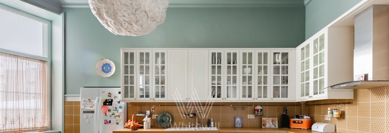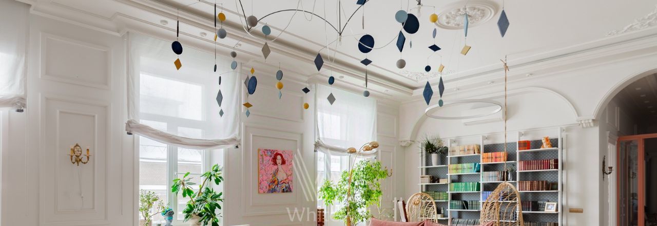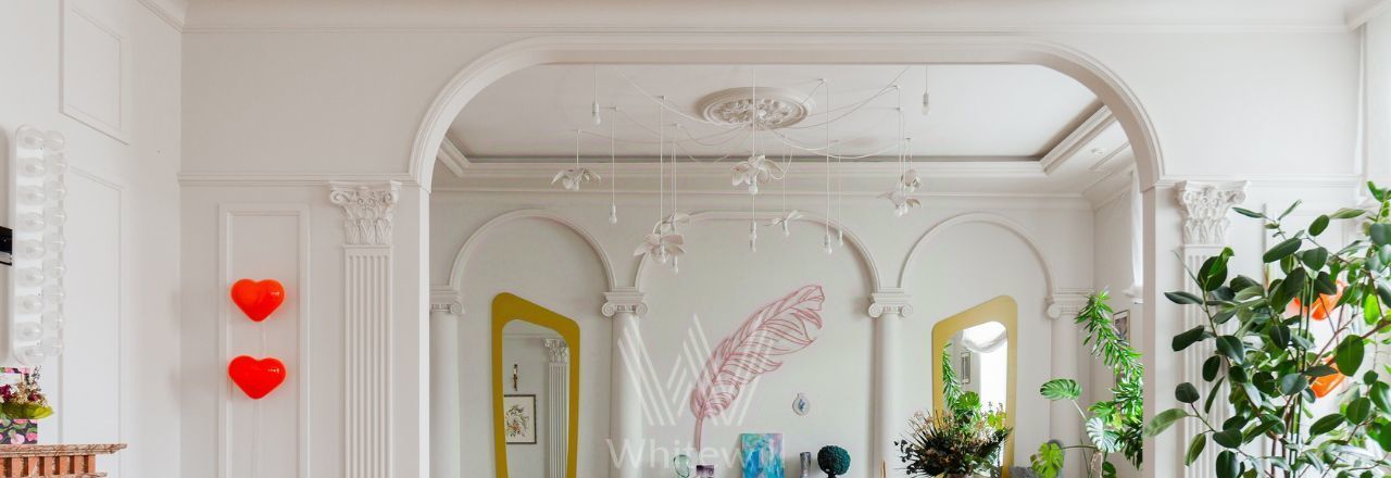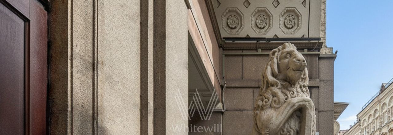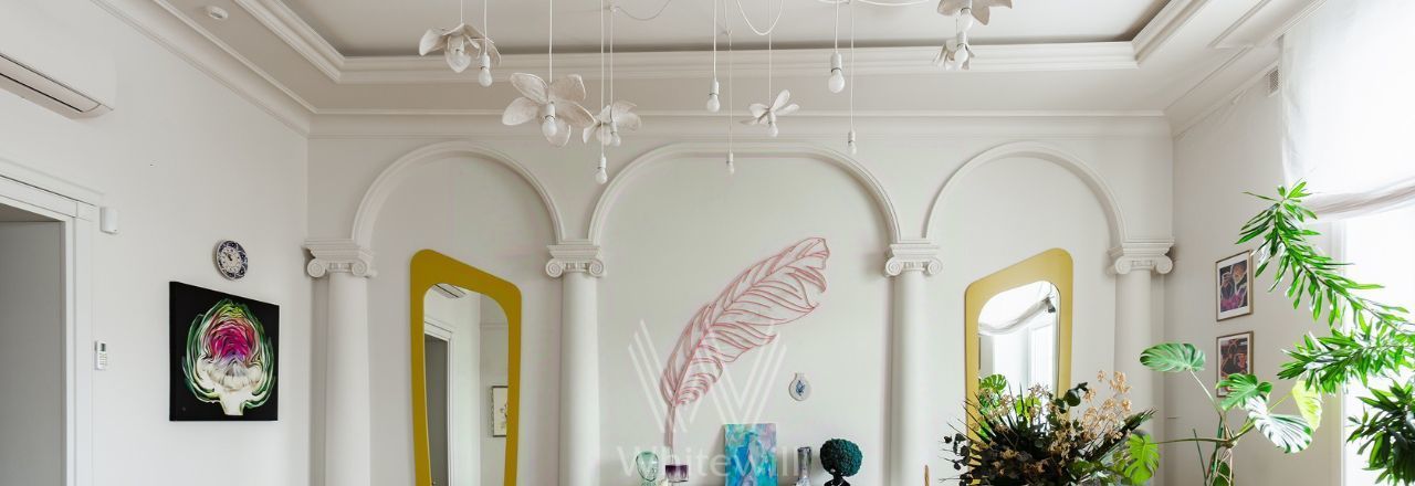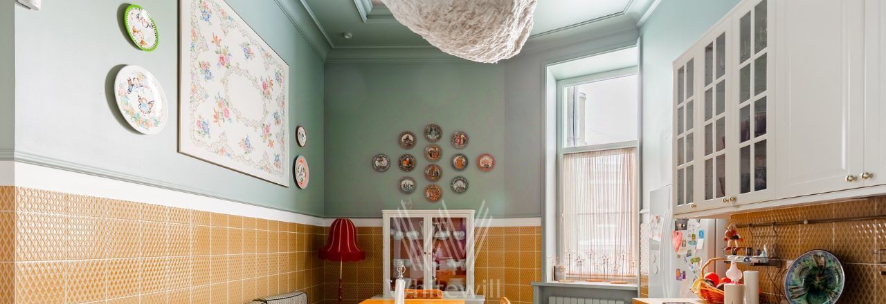 Бонус партнёрам 50%. Просторная квартира площадью 321 м² в особняке на Чистых прудах "Дом со львом" на 5 этаже. Выполнена дизайнерская отделка в авторском стиле. Стены оформлены молдингами, пилястрами и полуколоннами, потолок высотой 4 метра украшен лепниной и дизайнерскими подвесными светильниками. Светлый интерьер дополняют яркая мебель и предметы декора, установлен каминный портал. Большое количество окон наполняют пространство естественным светом.