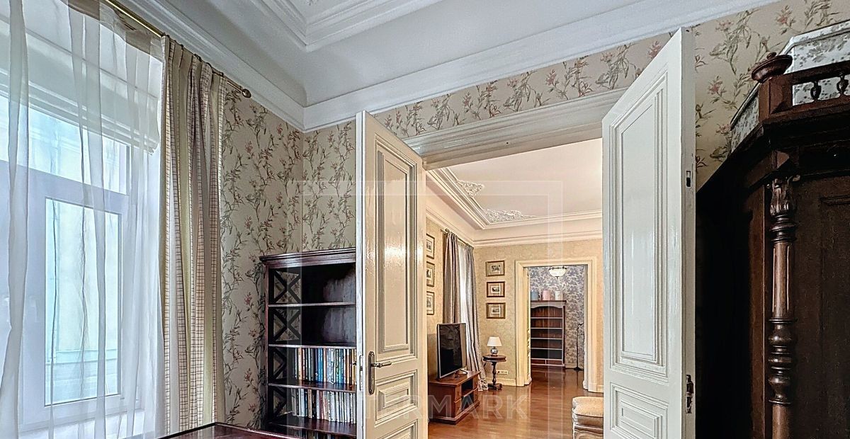 ID 47331. Классическая обстановка в 5-комнатной квартире в Романовом пер., д. 3, стр. 1, в шаге от Кремля. Уникальное сочетание французского интерьера квартиры в здании стиля необарокко и неоренессанса, известном как "Маршальский дом" или "5-й дом Советов". В отделке натуральные материалы, со временем приобретающие особую ценность. Пол из массива дуба, гипсовые молдинги и розетки для люстр, бесшовные обои, имитирующие ткань с орнаментом (ВОЗМОЖНА ПОКРАСКА СТЕН). Квартира полностью меблирована (ВЫВОЗ МЕБЕЛИ ВОЗМОЖЕН), оснащена бытовой техникой, 5 кондиционерами, водонагревателем, высокоскоростным интернетом, декоративным камином и охранной сигнализацией. Есть второй выход - во двор Общая площадь 155 кв. м. все комнаты изолированы: гостиная, 3 спальни, комната свободного назначения, гардеробная, кухня, гостевой туалет, ванная комната (ванна), прихожая. В квартире высокие потолки (более 3,5 м). Окна выходят в Романов пер. и во двор с фонтаном, детской площадкой и круглосуточной охраной. Парковка без фиксированного места за доп. плату. Удобное расположение - пешком до м. "Боровицкая", "Арбатская", "Александровский сад", "Охотный ряд". Квартира сдается в долгосрочную аренду (от года). Рассматриваются юридические и физические лица, семьи с 1-2 детьми с учетом планировки.