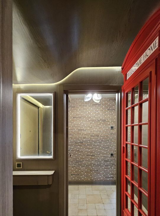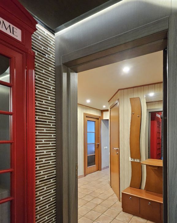 Пространство квартиры организованно из двух двухкомнатных квартир, объединённых прихожей. Таким образом на скромной площади панельного дома мы имеем органично обустроенное пространство для удобного проживания большой семьи. Условно квартира разделена на общую и спальную стороны. На каждой стороне свой санузел с ванной или душевым боксом и свой балкон.