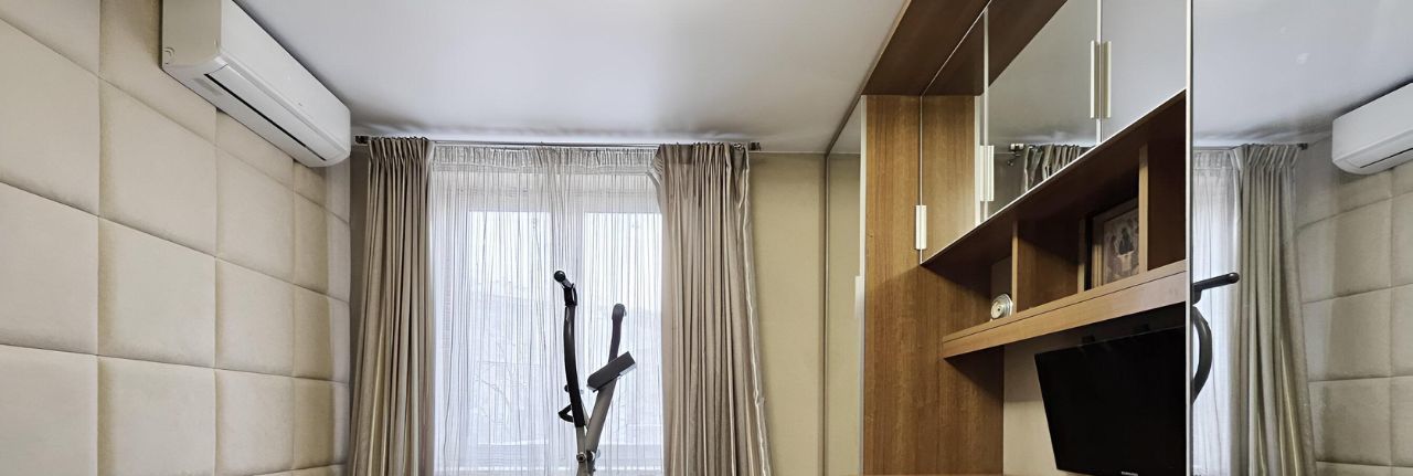 Третья спальня/кабинет соседствует с гостиной. Эта комната с дополнительной шумоизоляцией и стеной акустических панелей. У нас служила спальней подростка. По Вашим предпочтениям оборудуется диваном или кроватью.