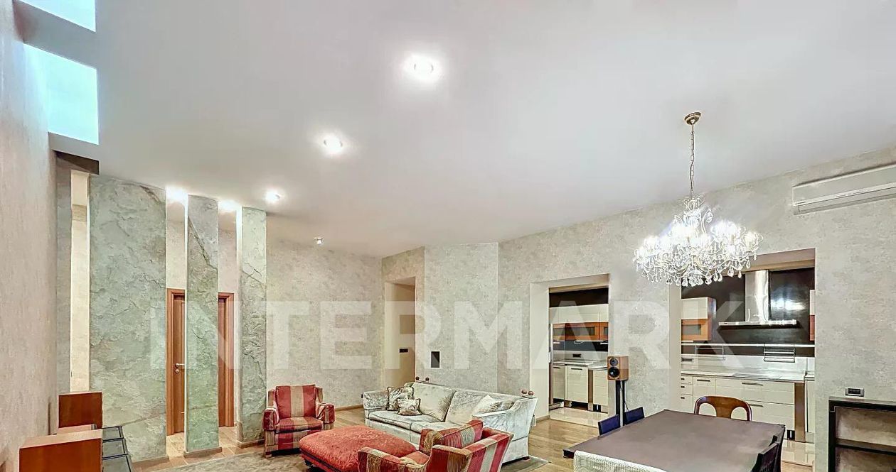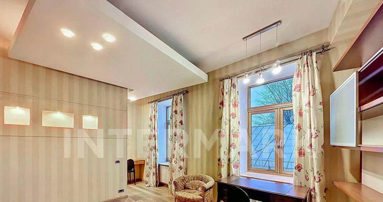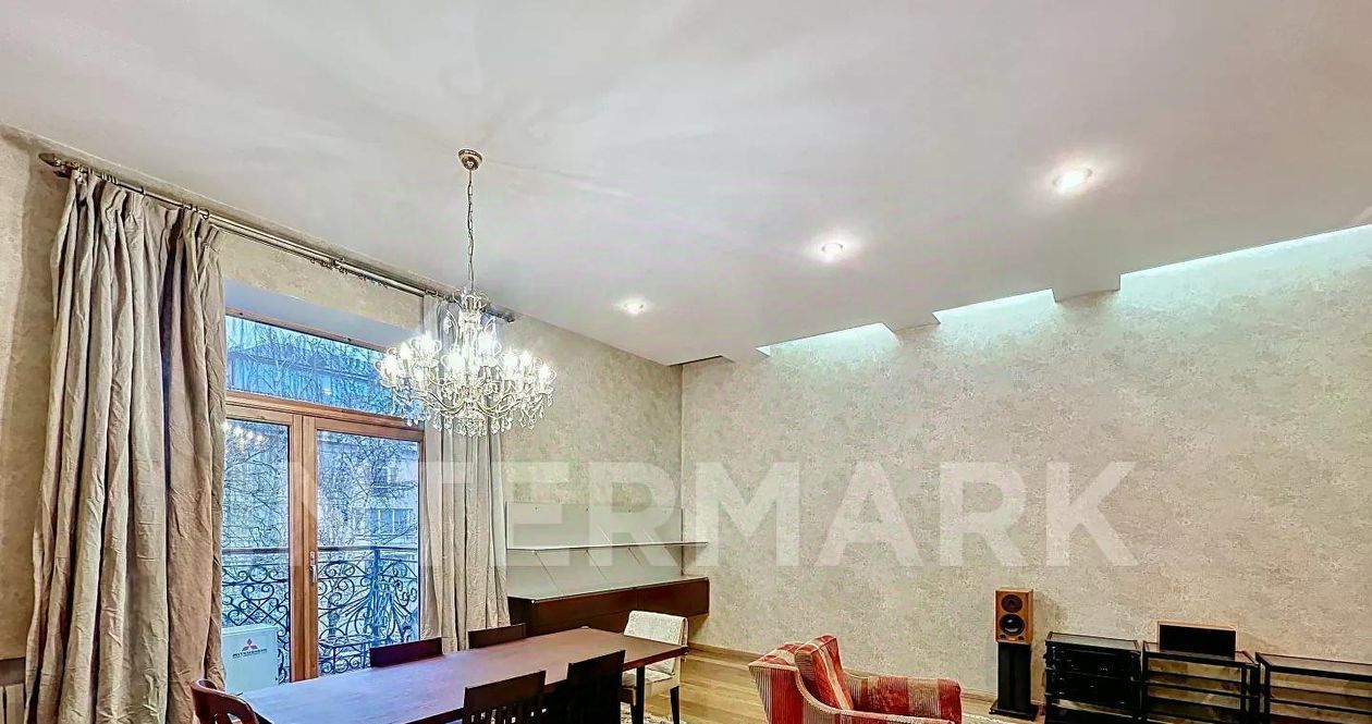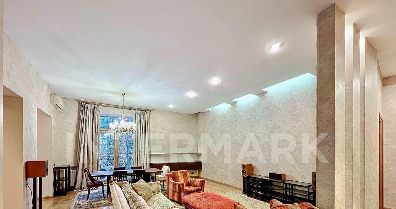 ID 38950. В аренду предлагается светлая и стильная пятикомнатная квартира в Тверском районе. Выполнен ремонт в современном стиле. Планировка: холл, кухня-гостиная, четыре спальные комнаты, две полные ванные комнаты, постирочная, гардеробная, французский баклон с видом на сад во дворе. Квартира частично меблирована, возможна доукомплектация по запросу арендатоа. Высокие потолки более 3 метров. Установлено кондиционирование. Паркинг наземный во дворе дома (имеется 1 закреплённое м/м). Территория дома огорожена, находится под охраной, пропускная система, Развитая инфраструктура района: кафе, рестораны, магазины, учебные заведения, парки, музеи, театры.