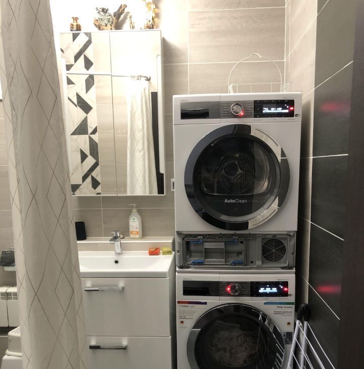 • главный санузел с ванной, а также стиральной и сушильной машинами bosch.