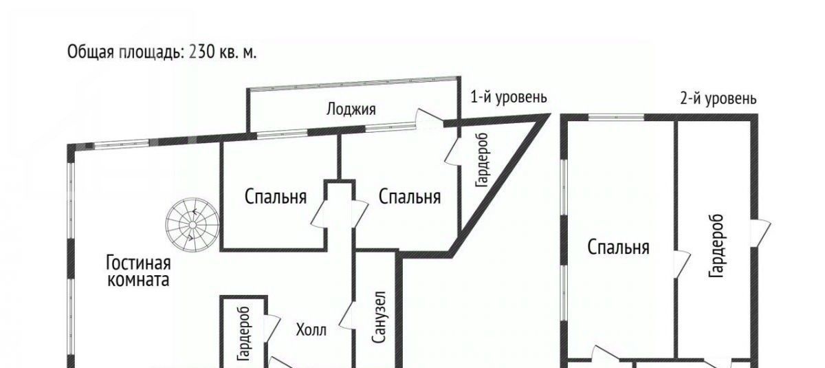 Планировка первого уровня: 1-й уровень: кухня-гостиная, две спальни, два санузла, гардеробная комната, лоджия, 2-й уровень: спальня, кабинет (спальня), гардеробная комната, санузел. Квартира полностью меблирована и оснащена всей необходимой техникой.