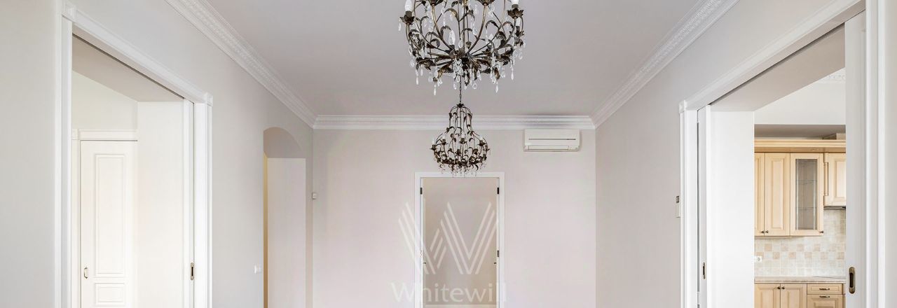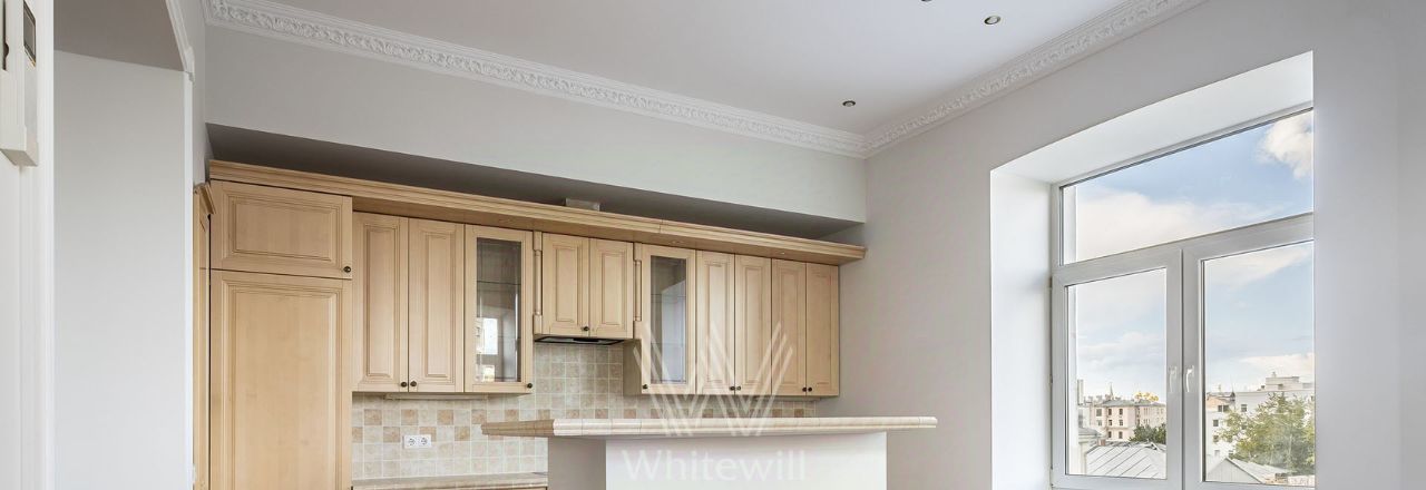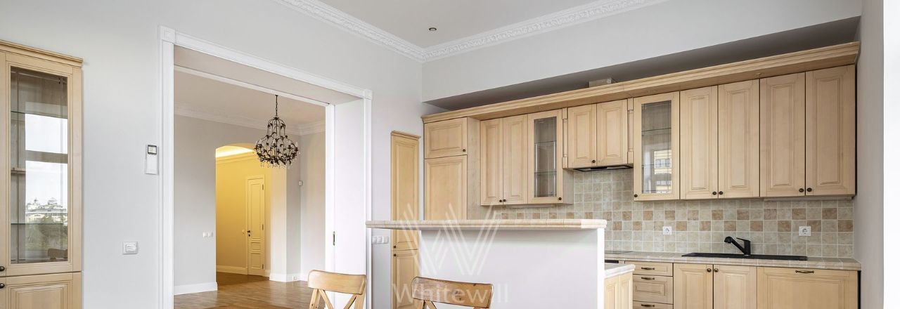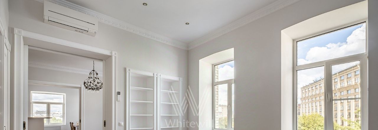 Бонус партнёрам 50%. Просторная квартира с 4-мя спальнями и видом на Кремль общей площадью 162 м² в историческом доме в районе Замоскворечье. Квартира расположена на 5-м этаже. Выполнена светлая отделка в классическом стиле с использованием натуральных материалов. Квартира после косметического ремонта. Потолки высотой 3,2 метра украшены подвесными люстрами.