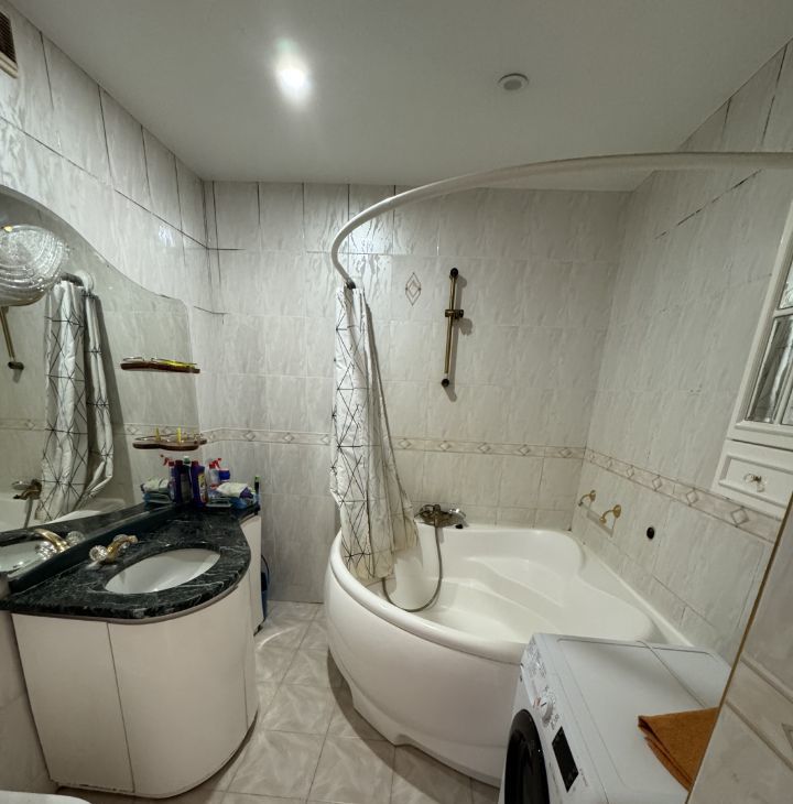 В квартире предусмотрены два санузла: один совмещённый и один отдельный, что обеспечивает комфортное проживание для большой семьи.