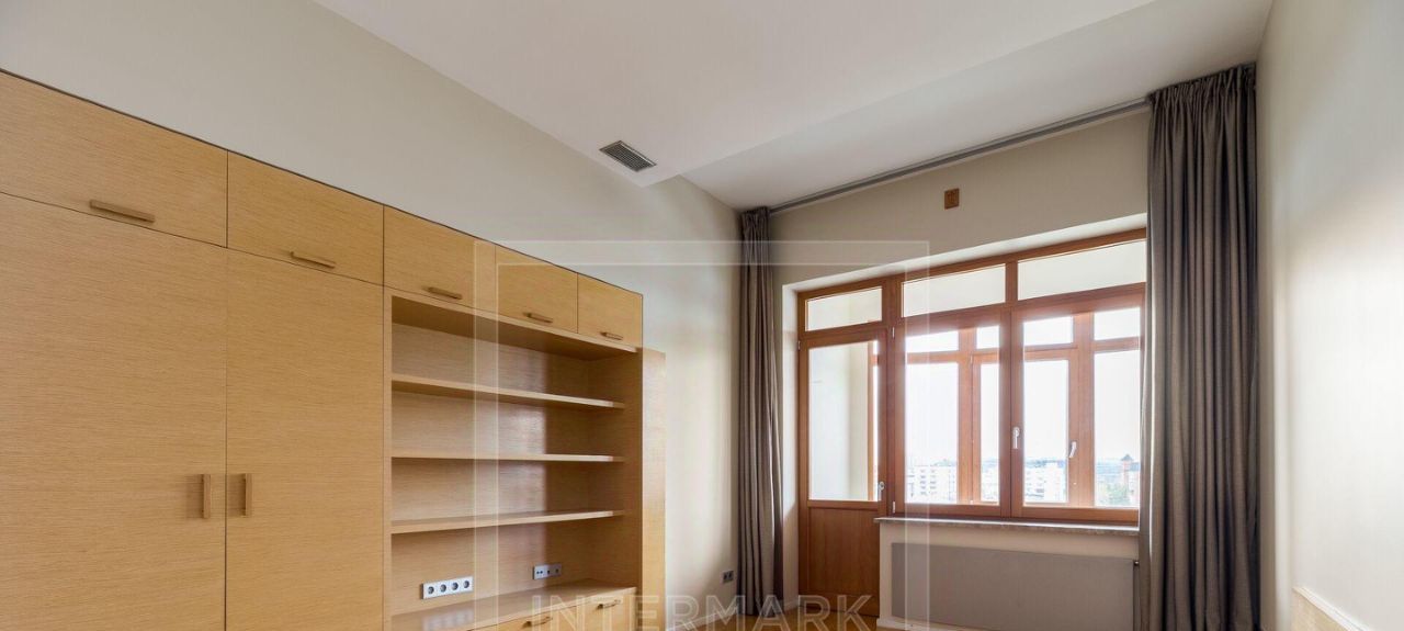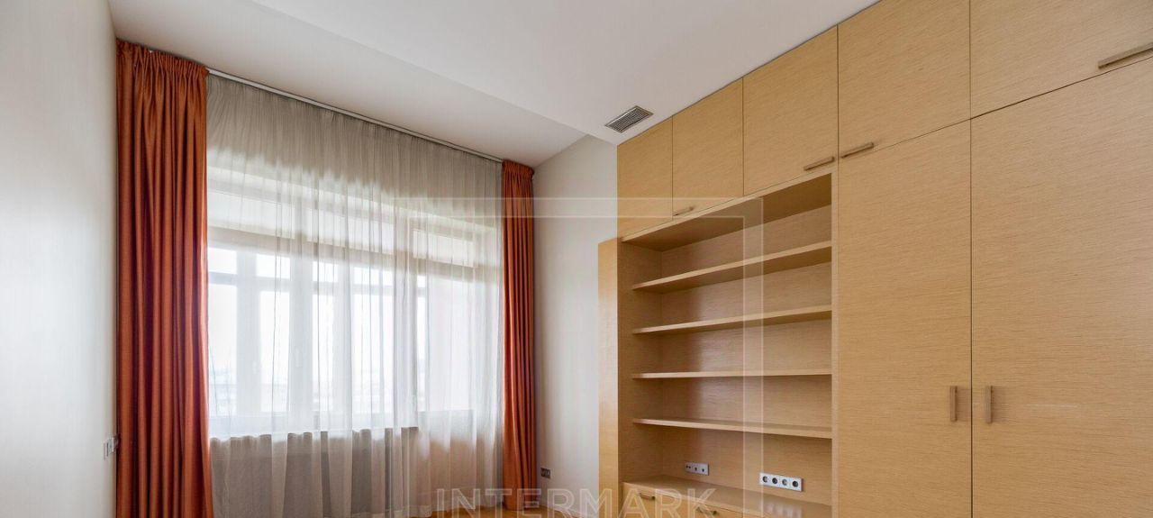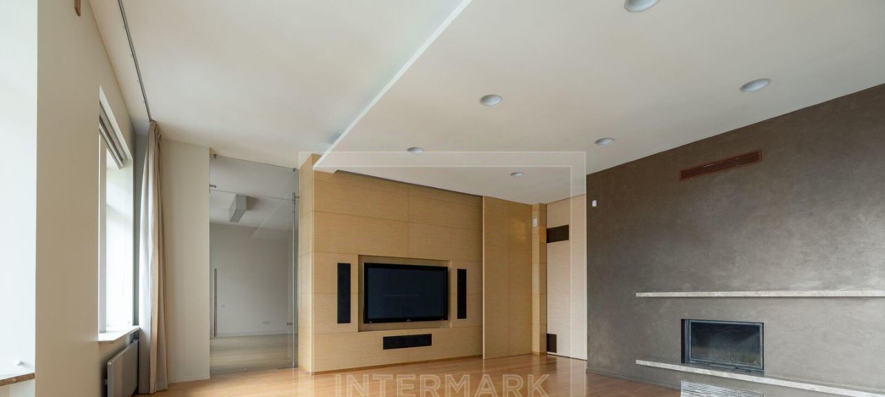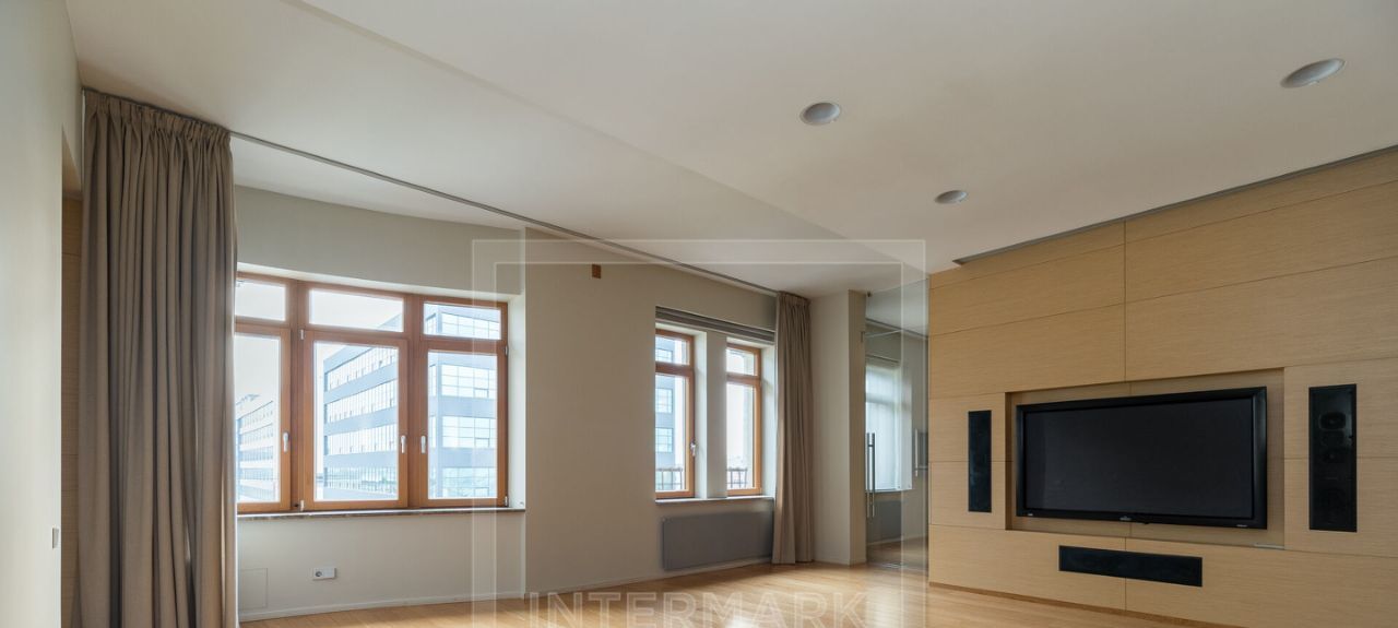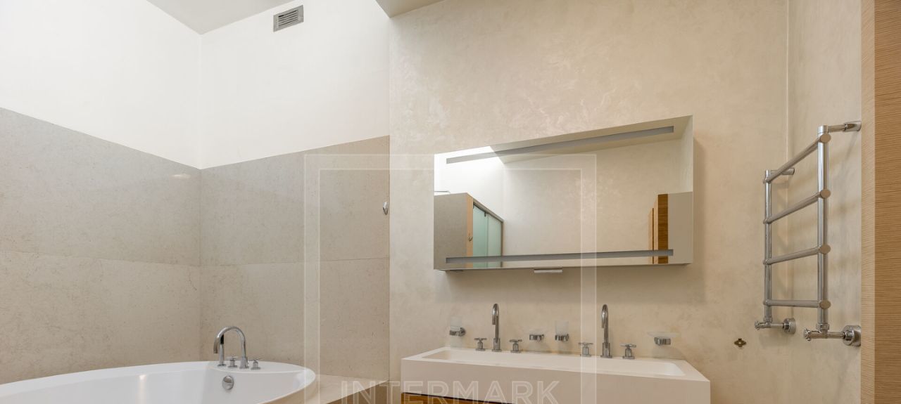 ID 32549: Эксклюзивные апартаменты в современном ЖК, в тихом зеленом районе Москвы. Современный интерьер в спокойной цветовой гамме, дизайнерская мебель и абстрактная живопись. Общая площадь: 286 кв.м. Функциональная планировка: приемная-холл, гостиная с камином, кухня-столовая, кабинет, главная спальня, гардеробная, две детские, гостевая и ванные комнаты. Из окон открывается эффектная панорама исторического центра города. В арендную стоимость входит два машино-места в подземном паркинге. С детьми можно. С животными можно.