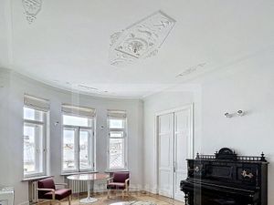 Просторная квартира площадью 161 м² в доме "Чаплыгина, 1", который является объектом культурного наследия. В квартире выполнены реставрационные работы, что вдохнуло новую жизнь в её интерьер. Восстановлены исторические двери, паркет, окна и фурнитура, лепнина и барельефы на потолках, подоконники и карнизы из камня — всё это придаёт по-настоящему элегантный вид пространству.
