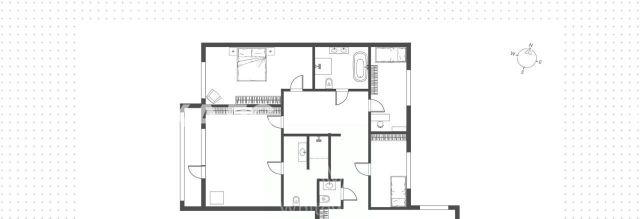 Планировка: гостиная-кухня-столовая, 4 спальни, 2 ванные комнаты, гостевой санузел, постирочная, холл. Квартира укомплектована современной мебелью и бытовой техникой. Кухня со столом-островом оснащена посудомоечной машиной и духовой печью. Спланирован выход на открытую лоджию. Окна выходят в благоустроенный внутренний двор и на город.