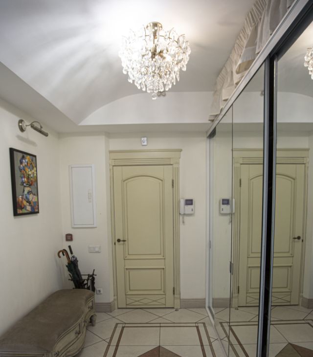 Общая площадь - 150,1 кв. м. Квартира расположена на 9 этаже 14-этажного кирпичного дома, построенного в 2003 году. Высота потолков - 3 метра.