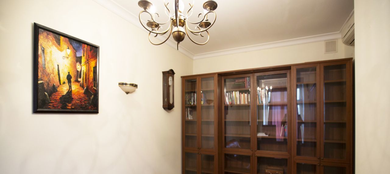 В квартире удобно расположены 3 спальни, гостиная, кабинет и другие помещения. Все комнаты обставлены мебелью. Гостиная с оборудованной кухней является центром притяжения всей семьи и местом отдыха. В квартире два совмещенных санузла, один с ванной, другой с душевой кабиной. Также имеются отдельные гардеробная и прачечная комнаты. Есть кондиционеры, холодильник, телевизор, посудомоечная и стиральная машины. Много шкафов и мест для хранения.