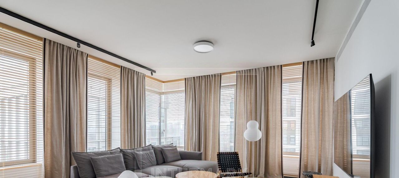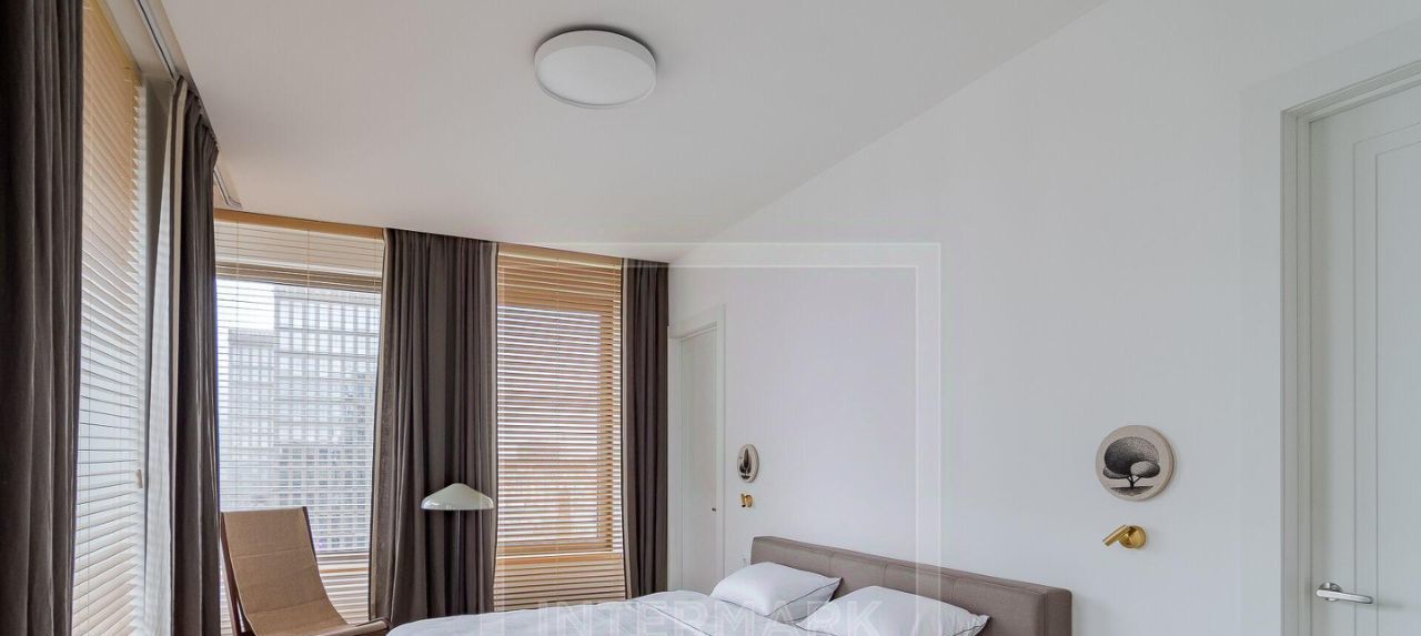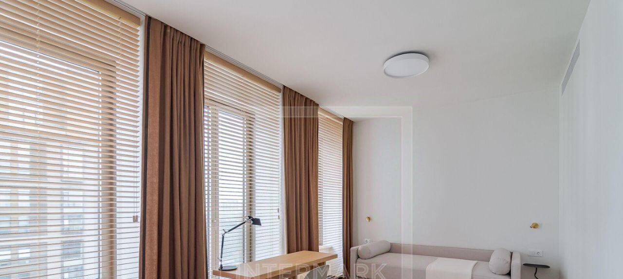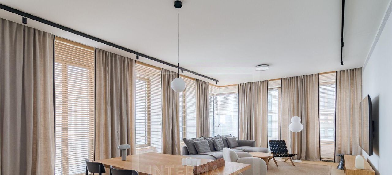 ID 47365. ЭКСКЛЮЗИВ INTERMARK Впервые на рынке аренды абсолютно новая великолепная 5-ти комнатная квартира в премиальном ЖК Lucky. Высококачественный дизайнерский ремонт с использованием только натуральных материалов. Полная комплектация мебелью, бытовой техникой и сантехникой самых престижных марок. Установлены кондиционеры, стиральная и сушильная машины, проведен высокоскоростной интернет. Общая площадь 190 кв. м. До мелочей функциональная и удобная планировка: гостиная объединенная с кухней, 4 спальни, 4 гардеробные комнаты, 3 ванные комнаты и гостевой туалет, постирочная комната. Большие французские окна и потрясающие виды на 3 стороны, высокие потолки, балкон. Представительная входная группа, профессиональная охрана, внутренний двор, фитнесс-центр. 1 машино-место на подземной парковке дома входит в стоимость предложения. ЖК расположен в пешей доступности от метро, в глубине тихого квартала, в ближайшем доступе парк, множество популярных кафе и ресторанов, магазинов, памятников архитектуры, известных музеев, мест для прогулок. Предлагается в длительную аренду. Можно с детьми. Без животных.
