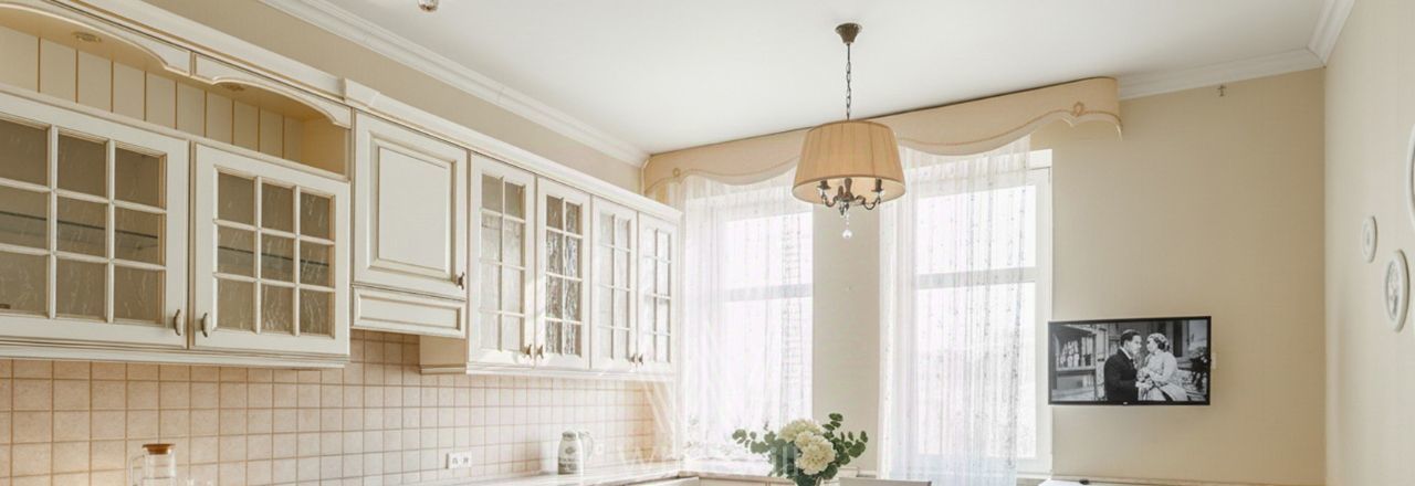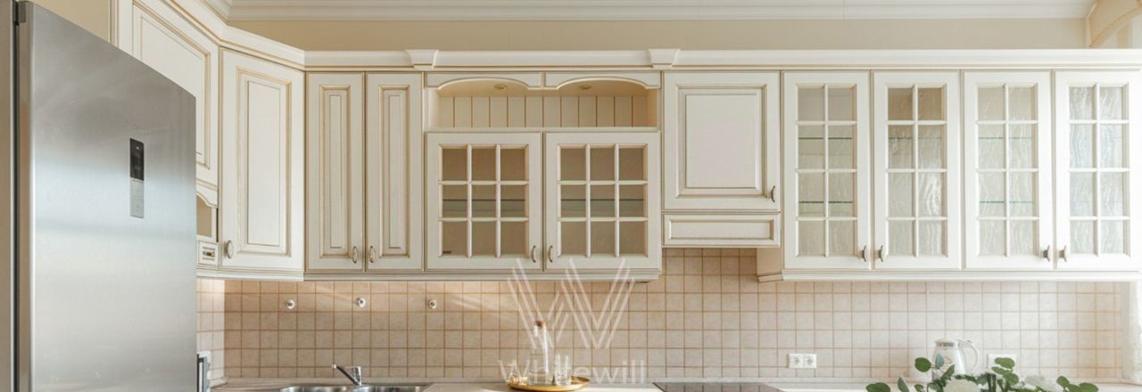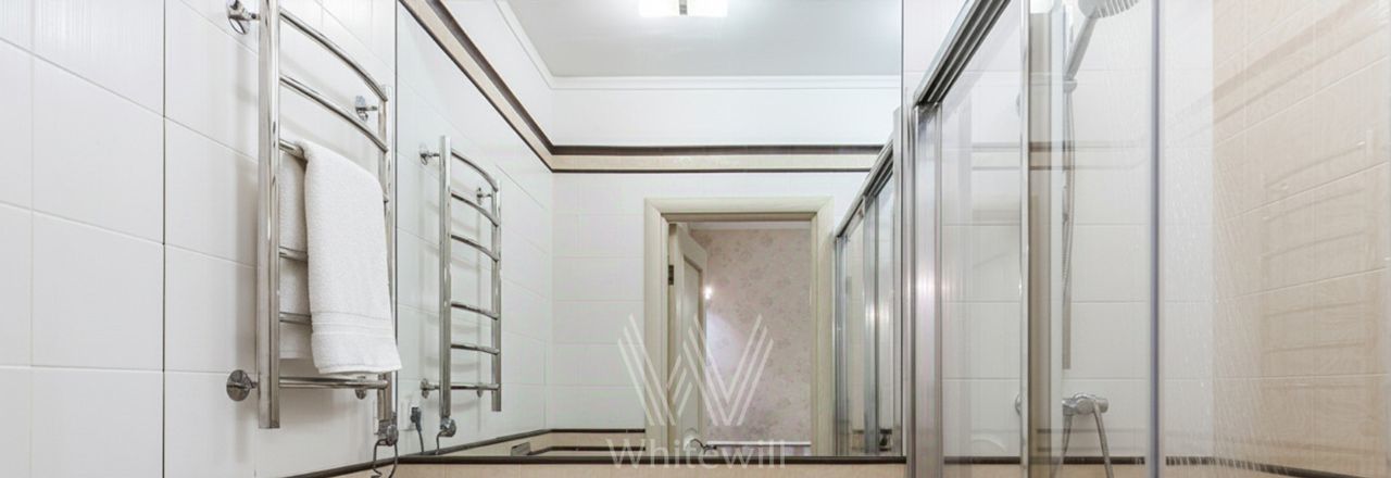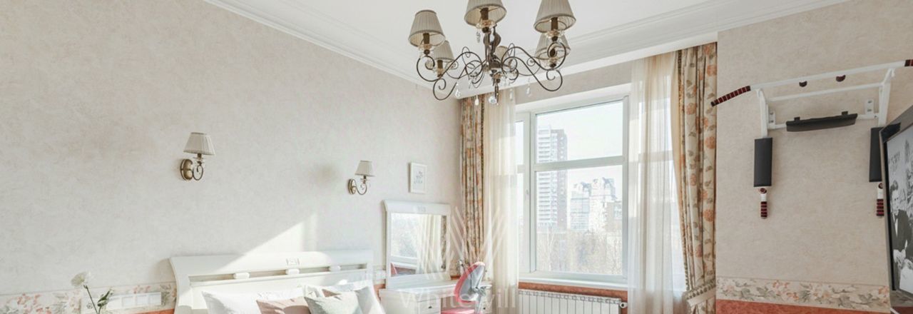Квартира с 4 спальнями общей площадью 164 м² в комплексе "Эльсинор" на 4 этаже. Выполнена отделка в классическом стиле в пастельных тонах. На полу выложен дубовый паркет и плитка Эмперадор, столешница на кухне изготовлена из мрамора. Большие окна наполняют пространство естественным светом.